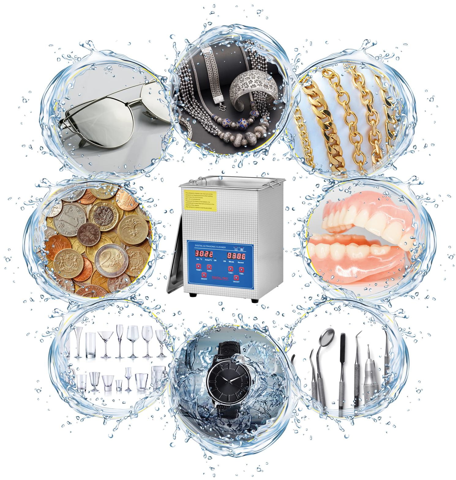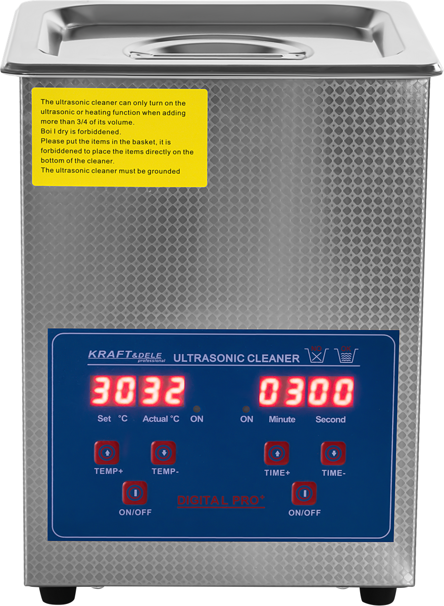 Regulowany czas pracy pozwala dostosować długość cyklu do stopnia zabrudzenia i rodzaju czyszczonego elementu. Wyświetlacz LCD pokazuje jednocześnie ustawiony czas i temperaturę cieczy, co umożliwia kontrolę procesu bez konieczności otwierania urządzenia.