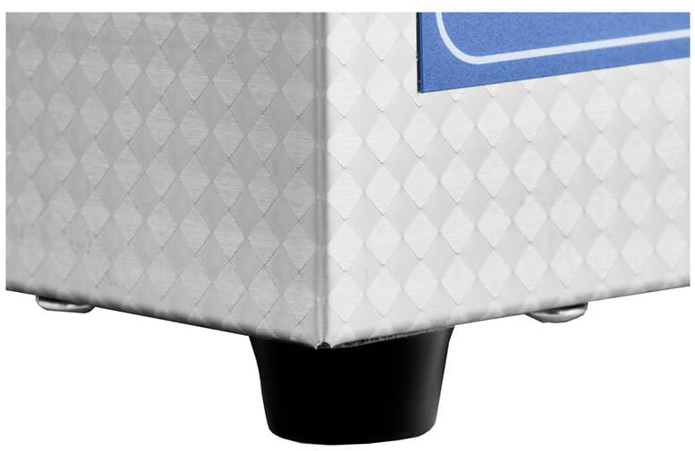 Zbiornik roboczy oraz obudowa wykonane są ze stali nierdzewnej, odpornej na działanie wody, detergentów i podwyższonej temperatury. Dołączona pokrywa wyciszająca ogranicza poziom hałasu podczas pracy — istotne szczególnie przy dłuższych cyklach czyszczenia w środowisku biurowym lub laboratoryjnym.