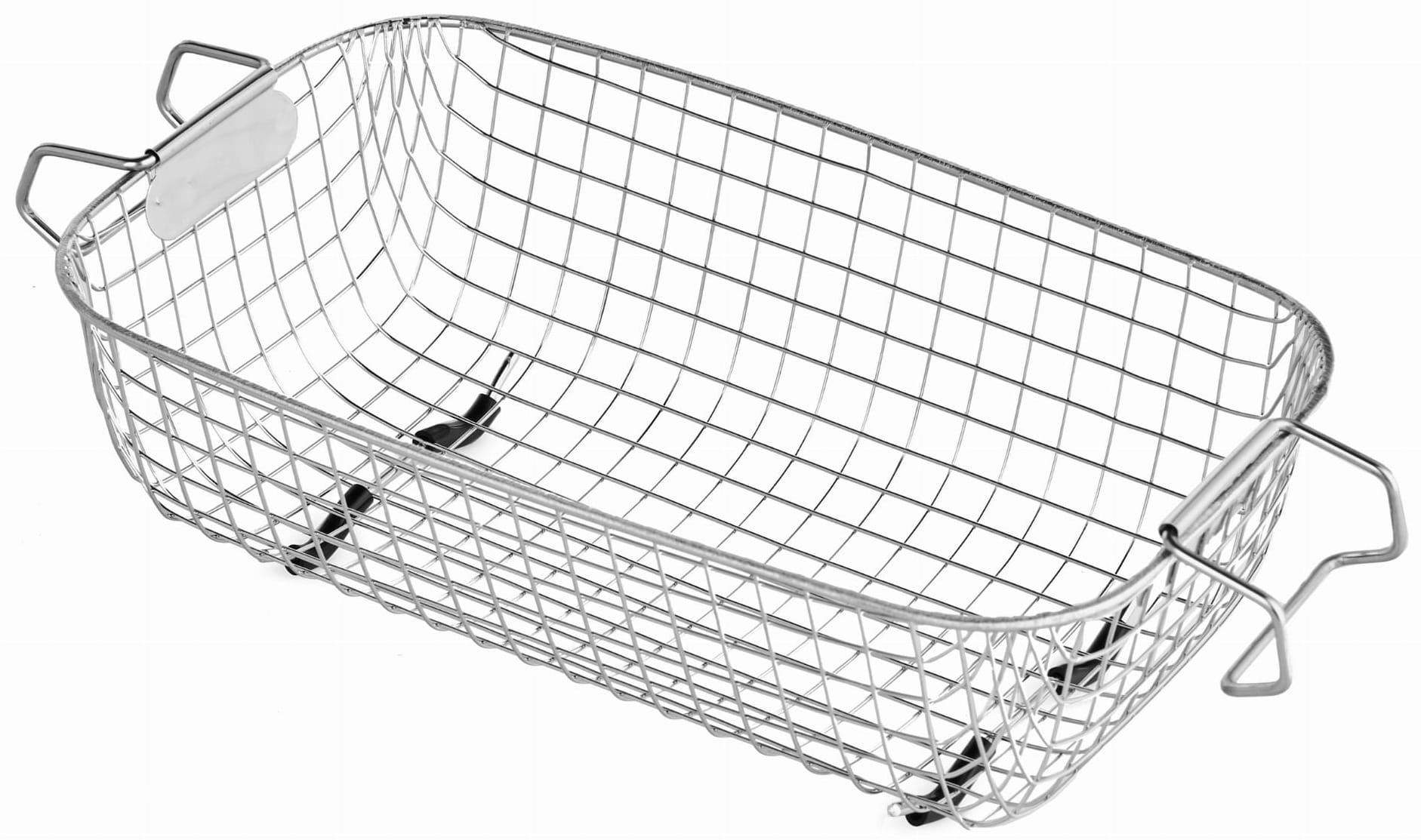 Dołączona pokrywa z uchwytem amortyzującym wstrząsy ogranicza poziom hałasu podczas pracy oraz zapobiega rozpryskiwaniu cieczy. Kosz ze stali nierdzewnej umożliwia zanurzenie i wyjęcie czyszczonych elementów bez kontaktu z dnem zbiornika, co chroni przetworniki przed uszkodzeniem mechanicznym.