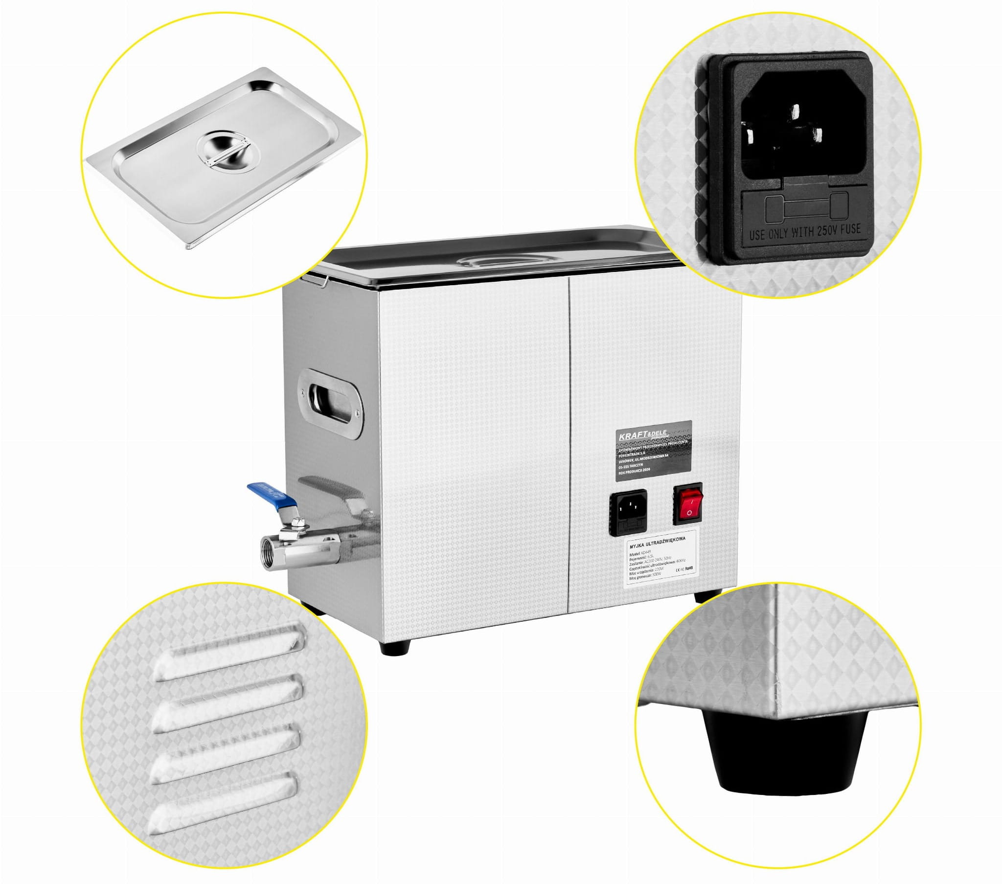 Urządzenie czyszczące wykorzystujące zjawisko kawitacji akustycznej do usuwania zabrudzeń, tłuszczu i zanieczyszczeń biologicznych z powierzchni precyzyjnych elementów. Zbiornik o pojemności 6,5 litra, trzy przetworniki ultradźwiękowe oraz funkcja grzania cieczy czynią ten model użytecznym zarówno w zastosowaniach profesjonalnych, jak i warsztatowych.