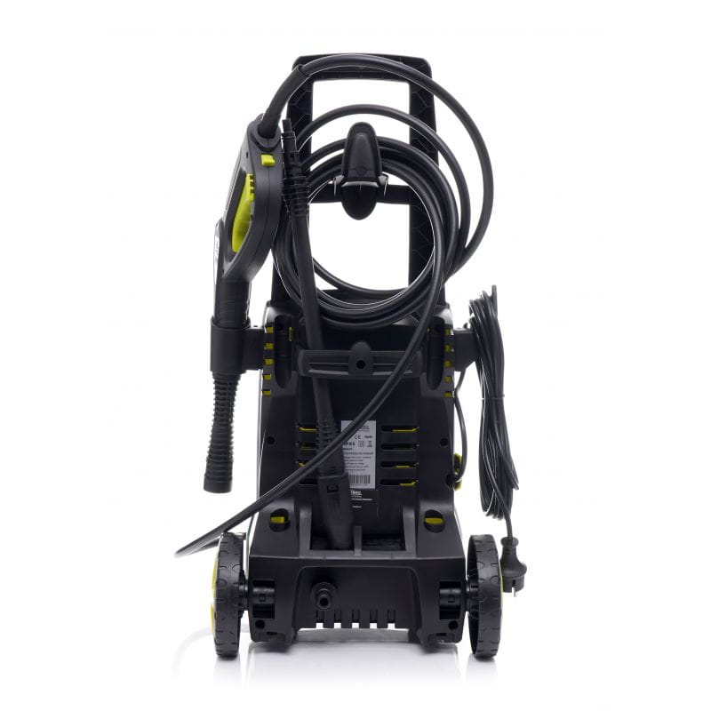 Myjka wymaga podłączenia do sieci wodociągowej lub zbiornika z pompą tłoczącą — urządzenie nie zasysa wody samoczynnie ze zbiornika otwartego. Minimalne ciśnienie zasilania należy sprawdzić w instrukcji obsługi. Gwint adaptera węża wejściowego jest standardowy — pasuje do typowych węży ogrodowych dostępnych w sprzedaży.