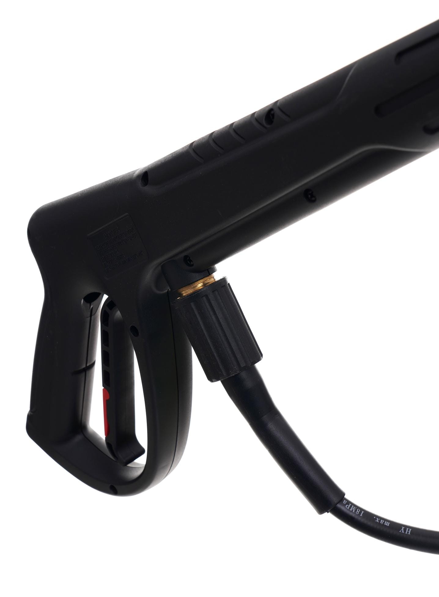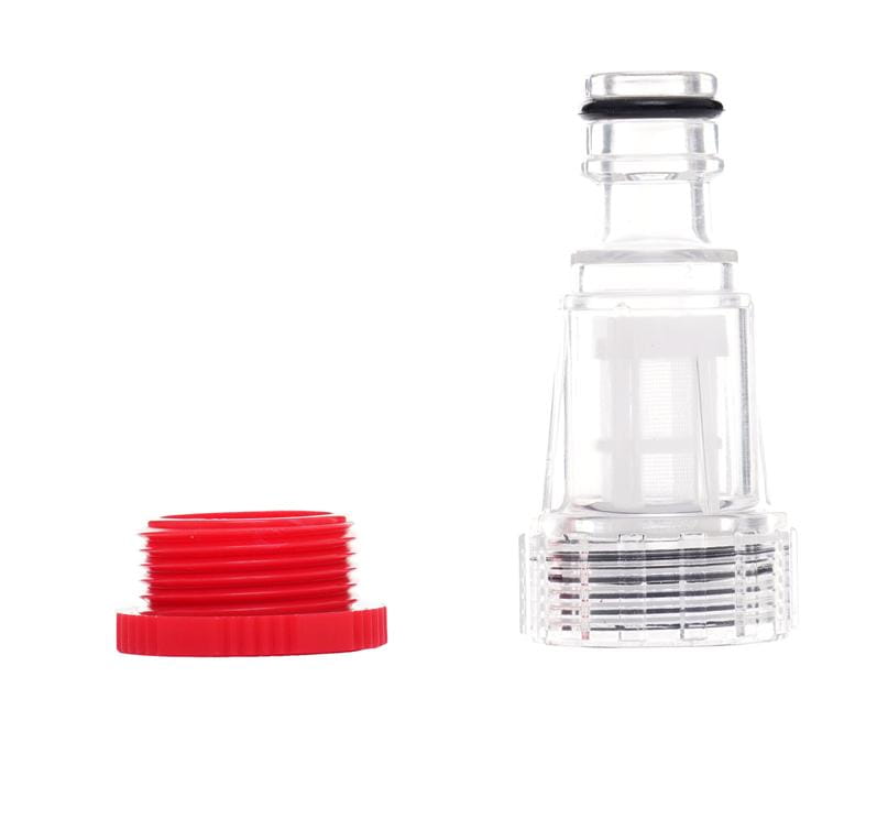 Myjka wymaga podłączenia do sieci wodociągowej lub zewnętrznego zbiornika z wodą. Maksymalne ciśnienie wejściowe wynosi 1,0 MPa — przed podłączeniem należy upewnić się, że ciśnienie w instalacji nie przekracza tej wartości. Adapter z filtrem wody w zestawie chroni pompę przed zanieczyszczeniami mechanicznymi z instalacji.