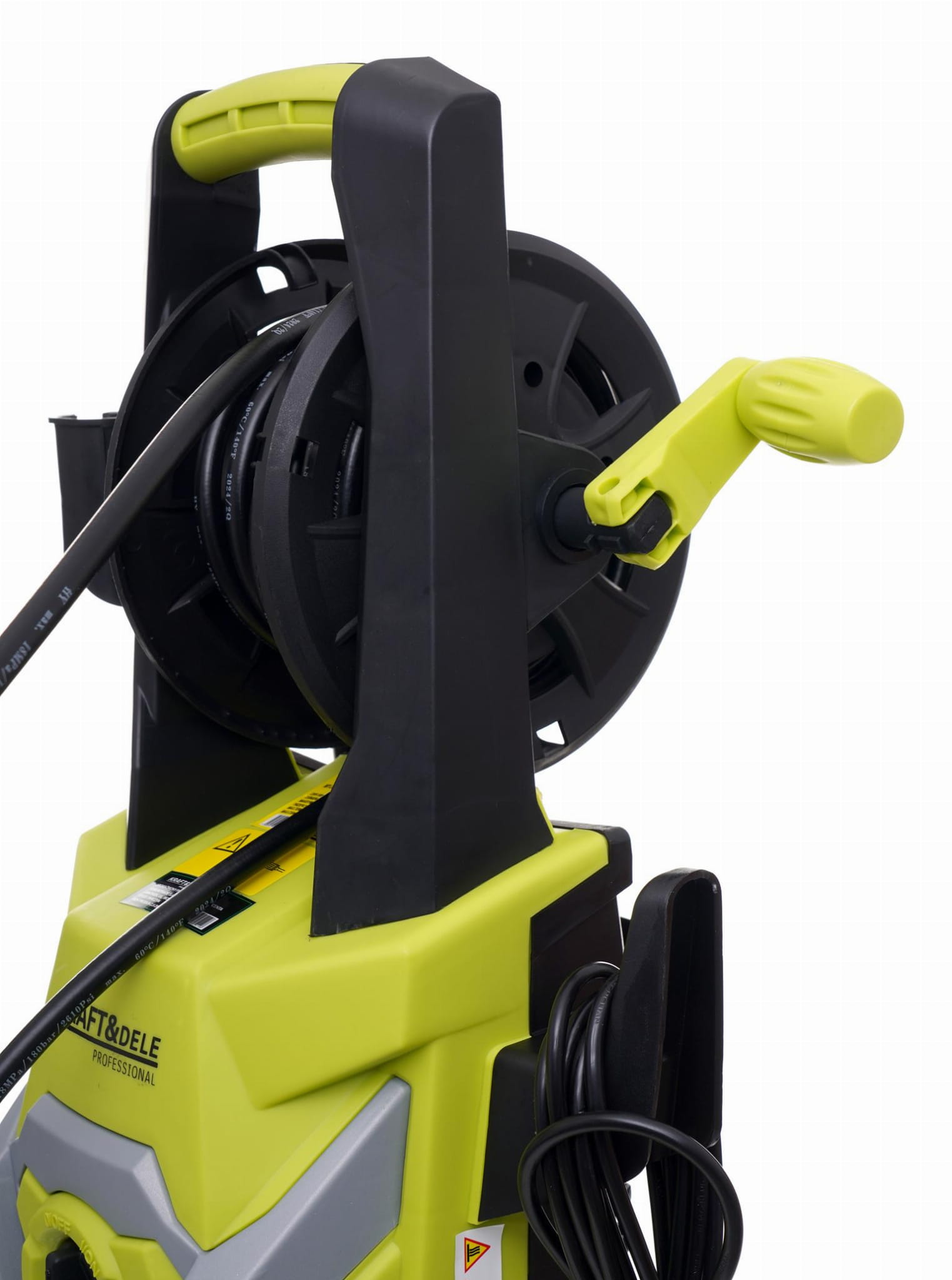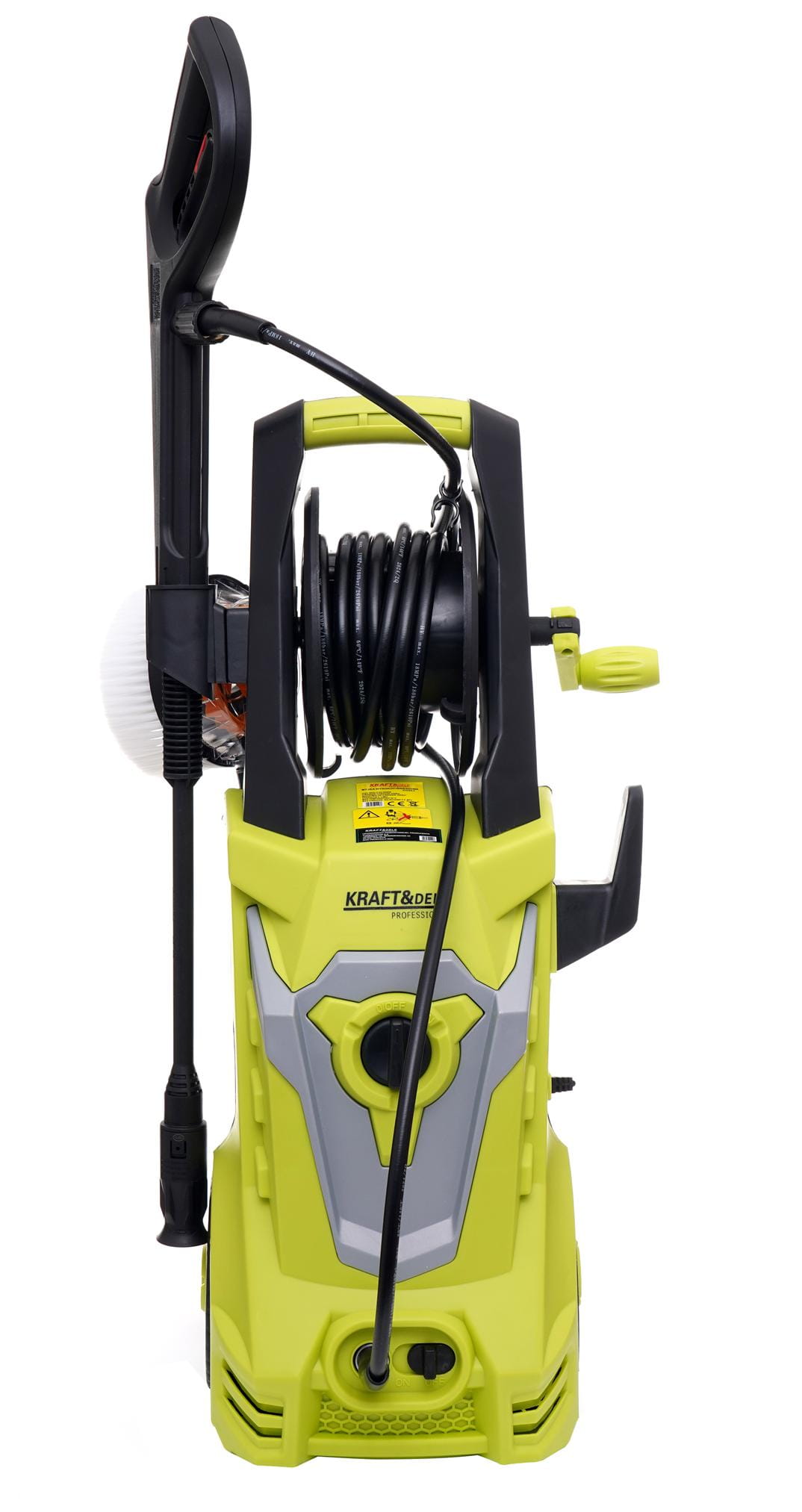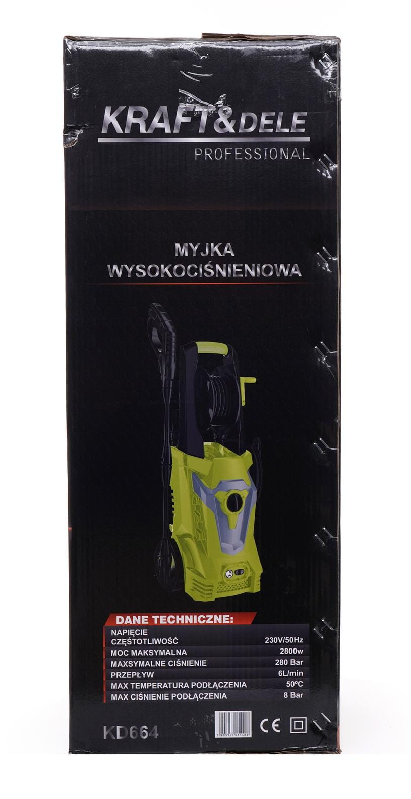 KD664 to elektryczna myjka wysokociśnieniowa z metalową pompą i silnikiem szczotkowym o mocy 2800W. Urządzenie przeznaczone do czyszczenia powierzchni zewnętrznych i pojazdów, wyposażone w system automatycznego wyłączania pompy po zwolnieniu spustu pistoletu.