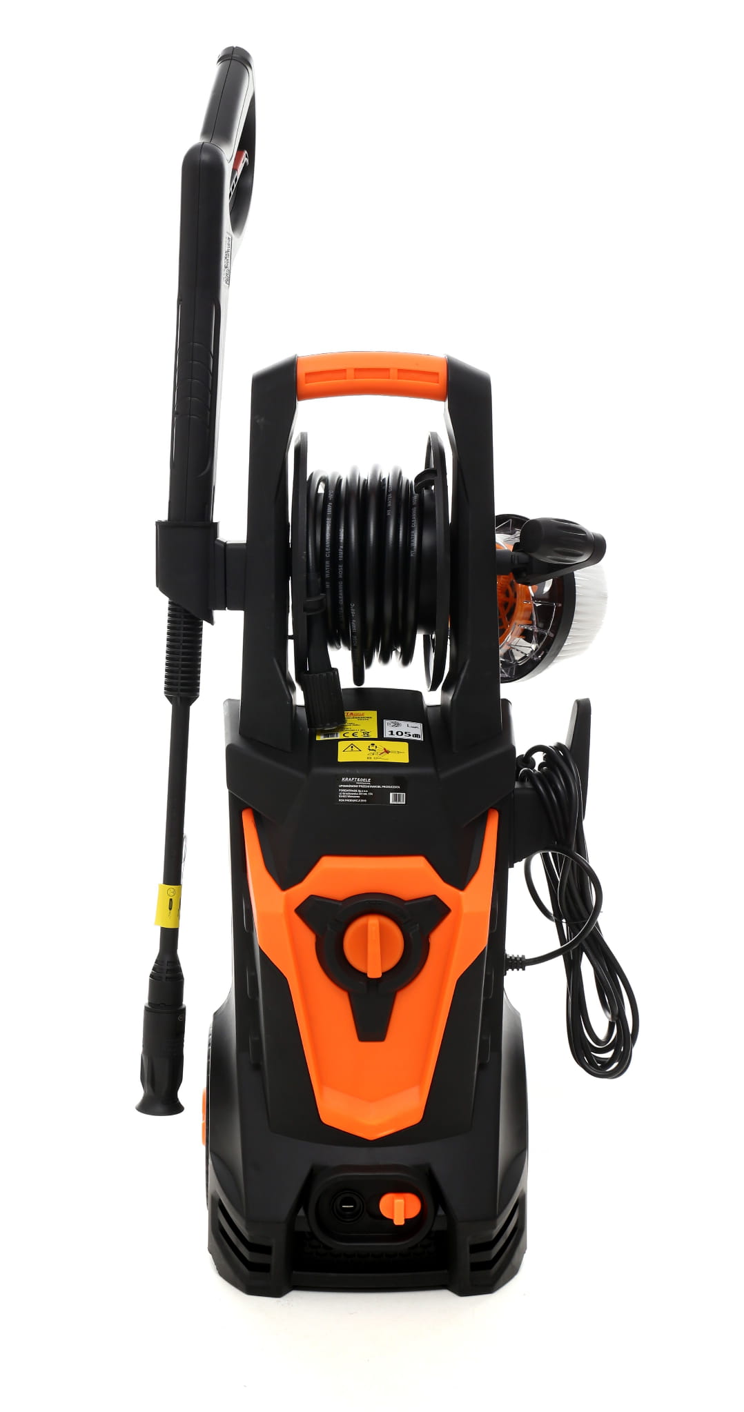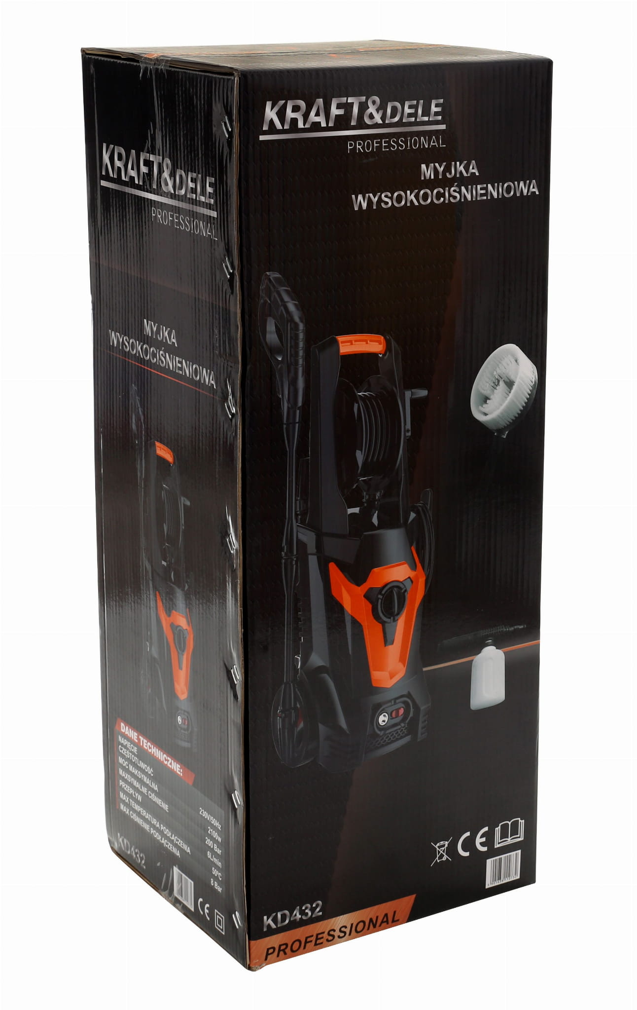 KD432 to elektryczna myjka ciśnieniowa z silnikiem szczotkowym o mocy 2100W, wyposażona w metalową pompę z napędem bezpośrednim oraz system automatycznego zatrzymania pompy po zwolnieniu spustu pistoletu. Zestaw zawiera bęben z wężem, pianownicę i szczotkę, co pozwala na podjęcie pracy bezpośrednio po rozpakowaniu.
