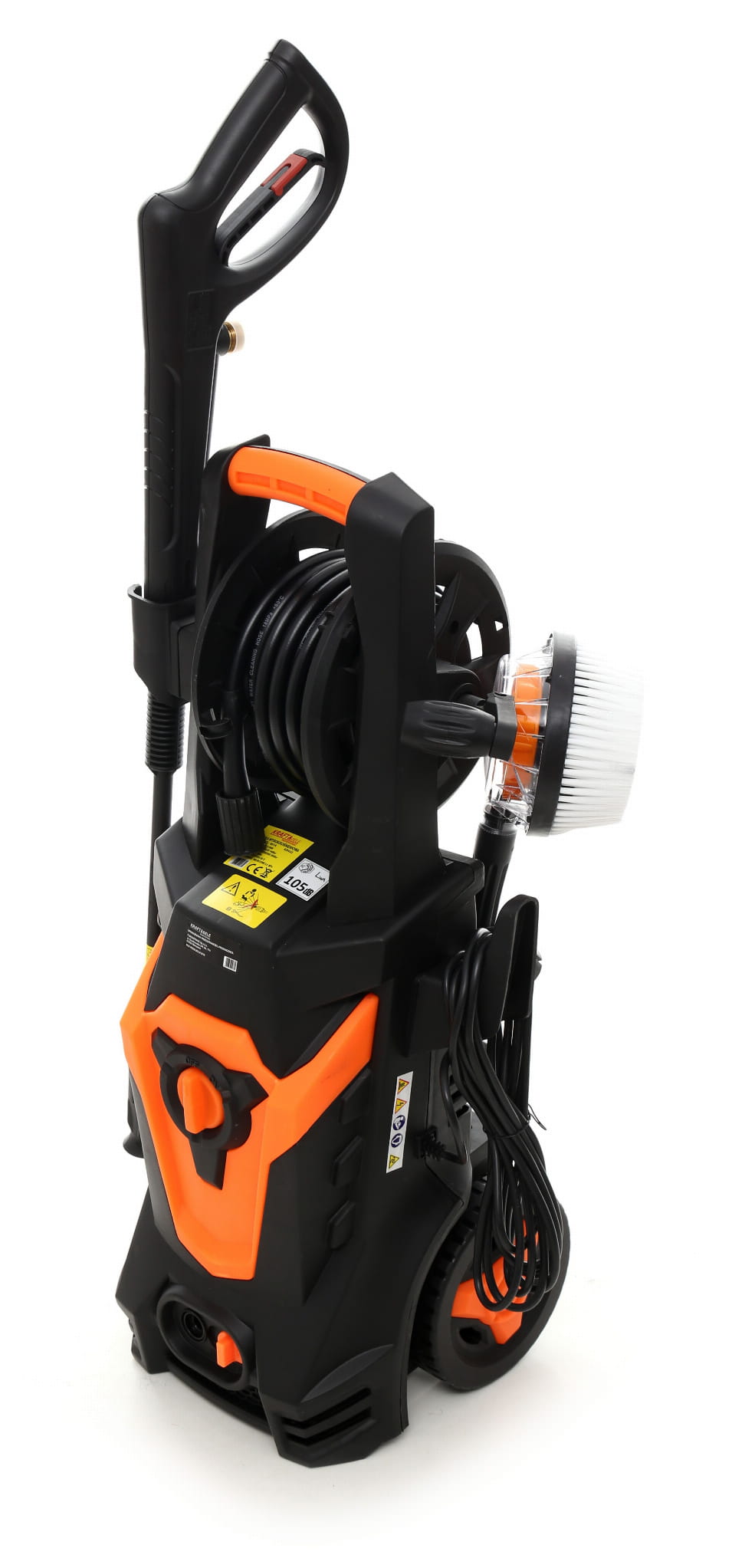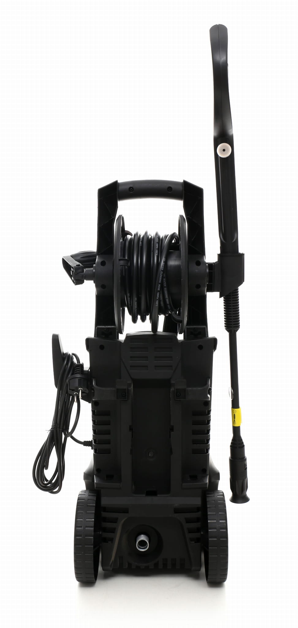 Urządzenie waży 9 kg i wyposażone jest w dwa kółka jezdne oraz dużą rączkę transportową. Bęben do zwijania węża porządkuje osprzęt i eliminuje konieczność ręcznego zwijania 5-metrowego węża po każdym użyciu.