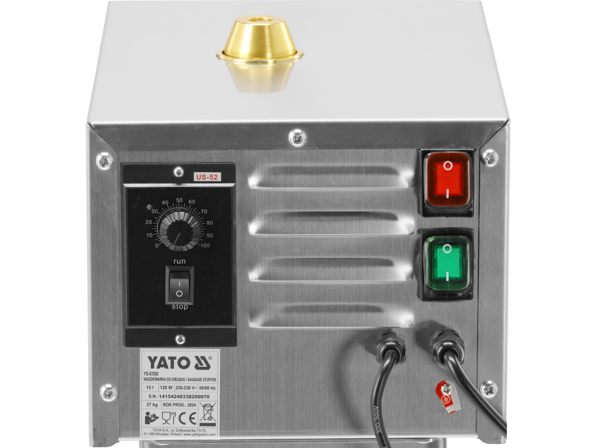 Elektryczna nadziewarka przeznaczona do napełniania osłonek naturalnych i sztucznych przy produkcji wędlin domowych i w małych zakładach przetwórstwa mięsnego. Zbiornik o pojemności 15 litrów umożliwia przetwarzanie większych partii surowca bez konieczności częstego uzupełniania.