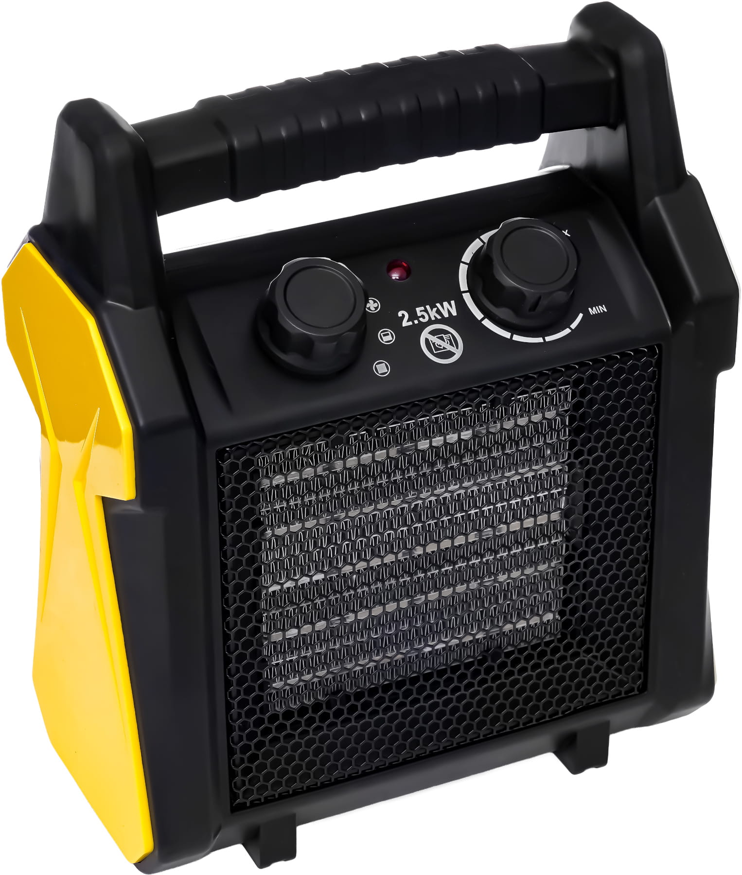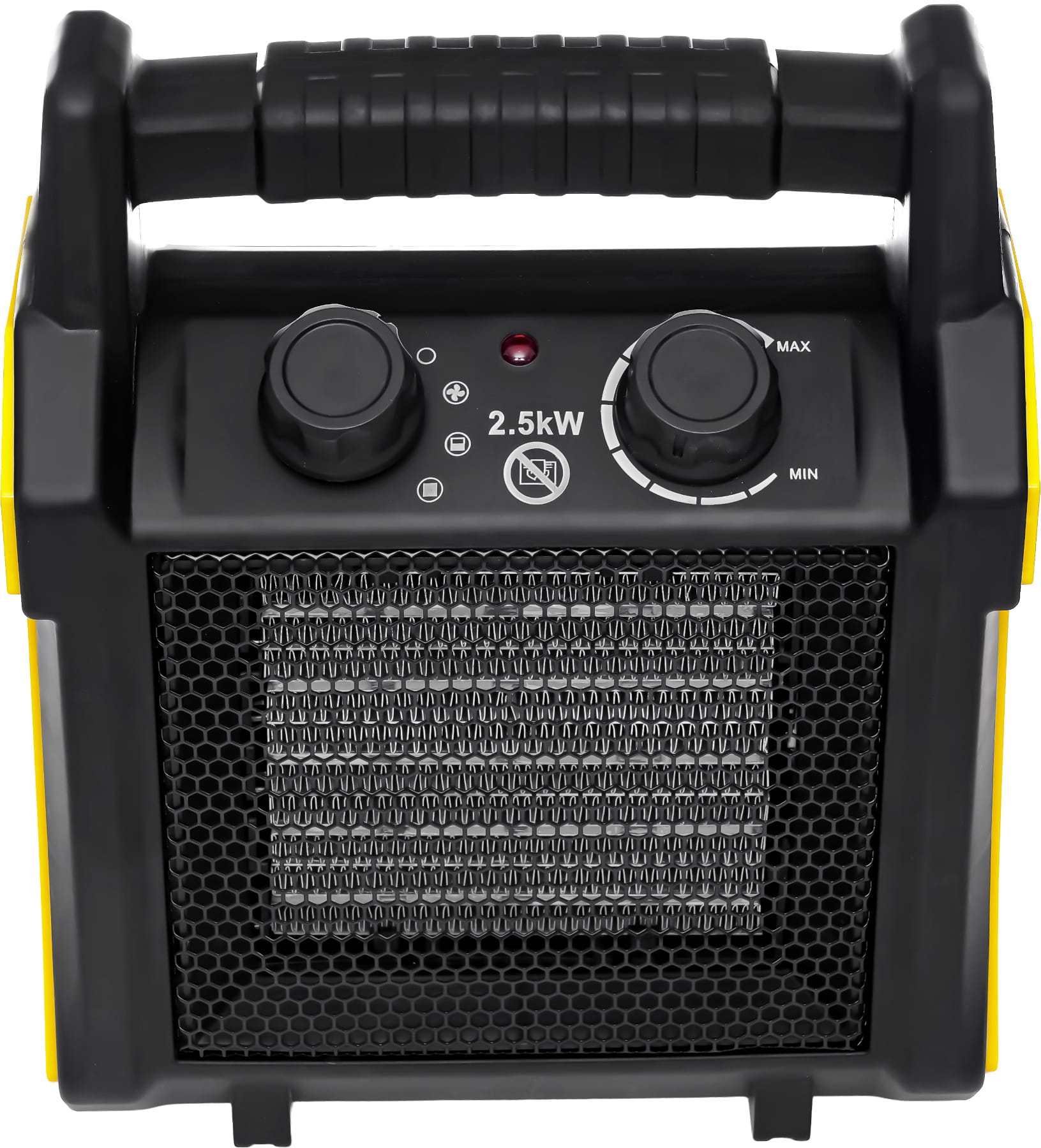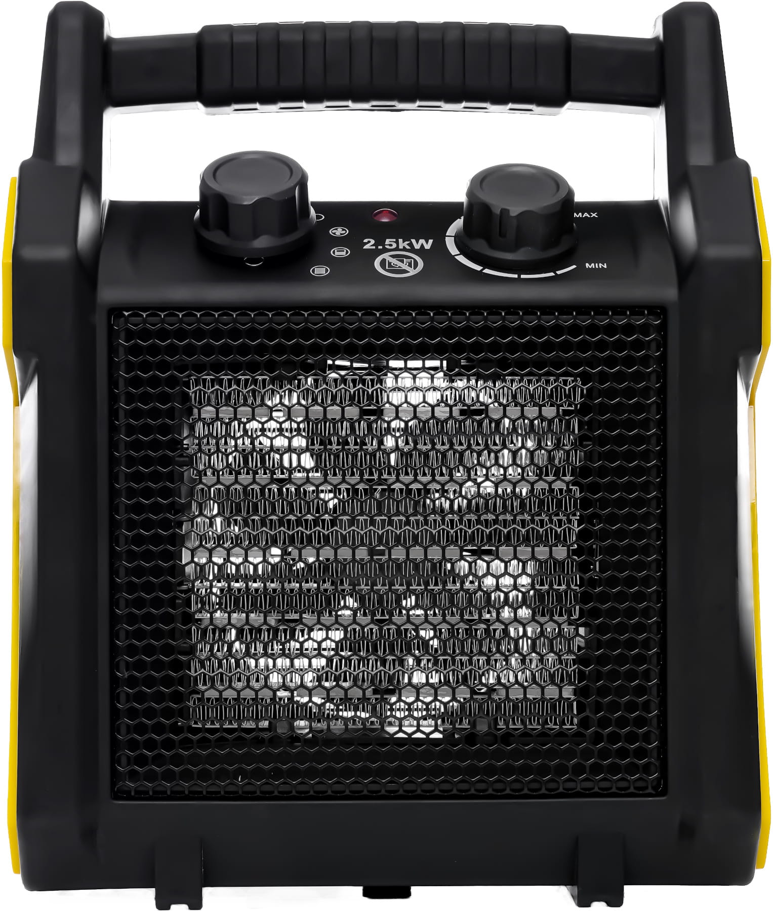 Kompaktowa dmuchawa elektryczna o mocy 2500 W z grzałką z kompozytu miedzi i stali szlachetnej. Urządzenie pracuje w trybie ogrzewania z regulacją mocy oraz w trybie wentylacji bez grzania, co umożliwia całoroczne użytkowanie. Masa 1,5 kg i wbudowany uchwyt pozwalają na szybkie przemieszczanie nagrzewnicy między stanowiskami.