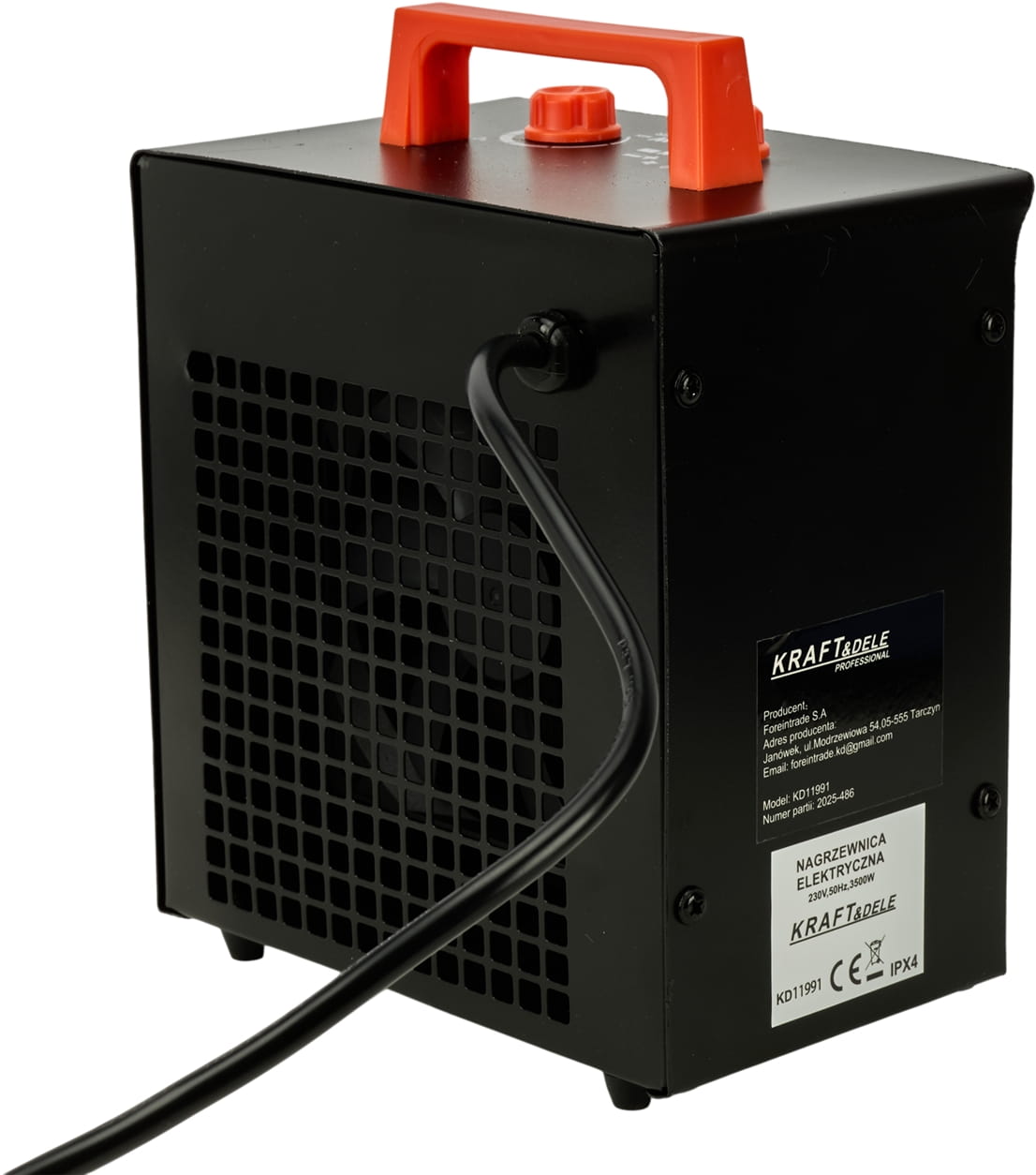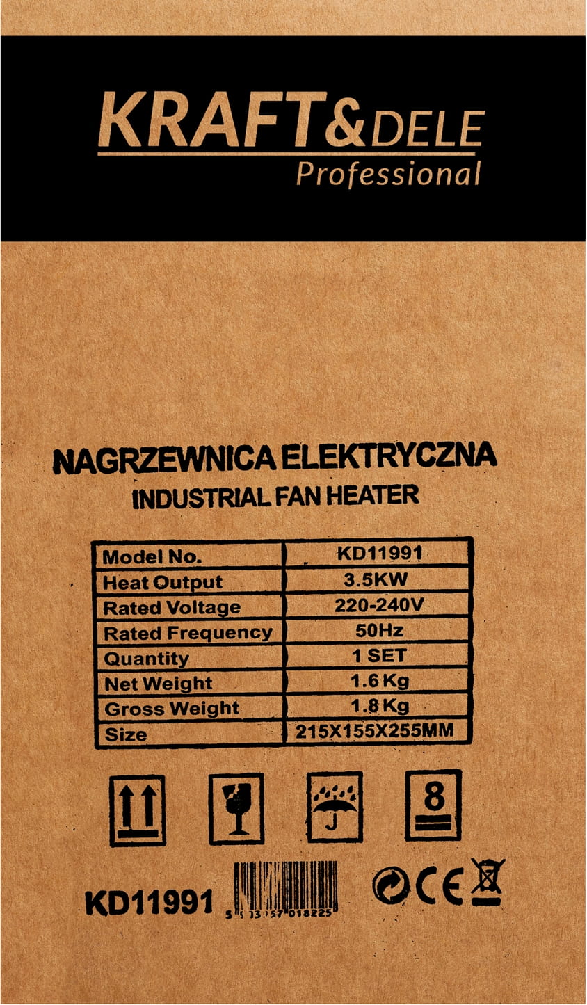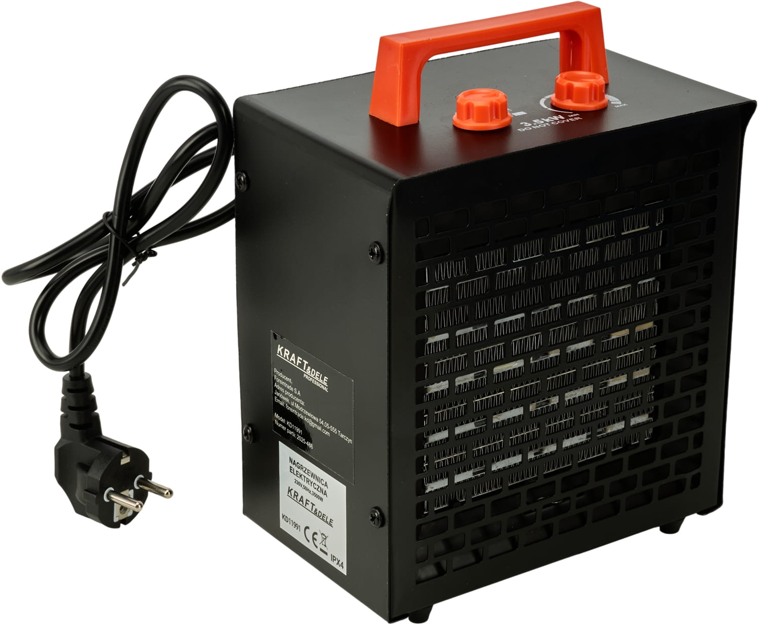 Elektryczna nagrzewnica z regulacją mocy w trzech stopniach (30/1750/3500W), wyposażona w wbudowany termostat i samoresetujący wyłącznik termiczny. Przeznaczona do ogrzewania pomieszczeń roboczych, magazynów, warsztatów i placów budowy. Kompaktowa konstrukcja o wadze 1,6 kg umożliwia łatwe przenoszenie i szybkie uruchomienie w miejscu pracy.