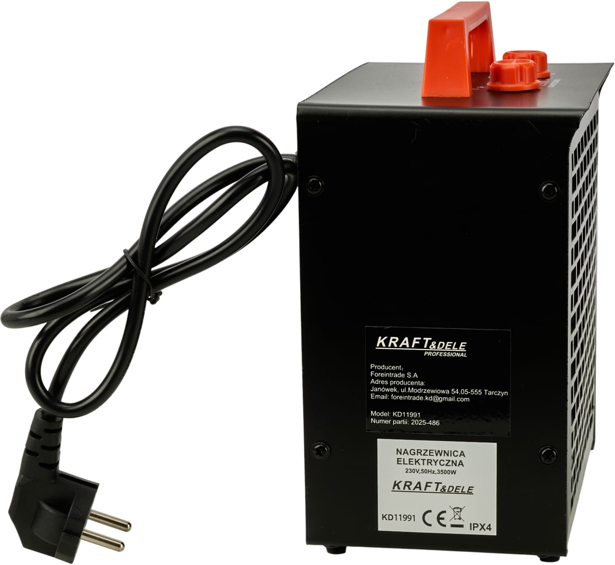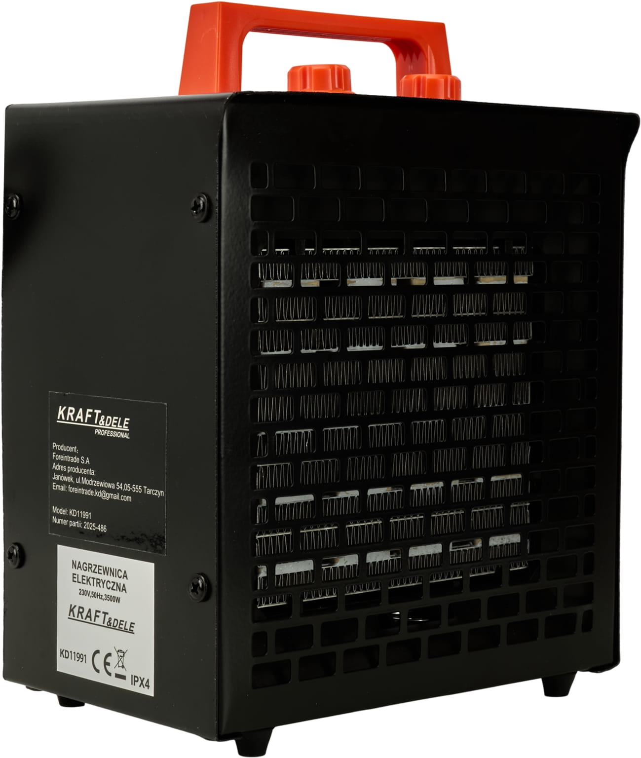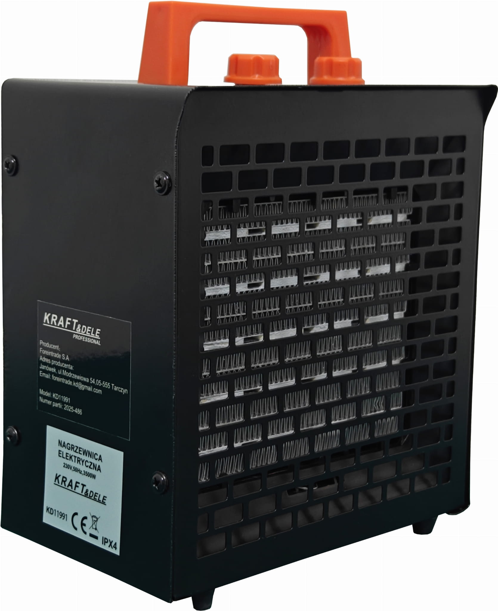 Elektryczna nagrzewnica z regulacją mocy w trzech stopniach (30/1750/3500W), wyposażona w wbudowany termostat i samoresetujący wyłącznik termiczny. Przeznaczona do ogrzewania pomieszczeń roboczych, magazynów, warsztatów i placów budowy. Kompaktowa konstrukcja o wadze 1,6 kg umożliwia łatwe przenoszenie i szybkie uruchomienie w miejscu pracy.