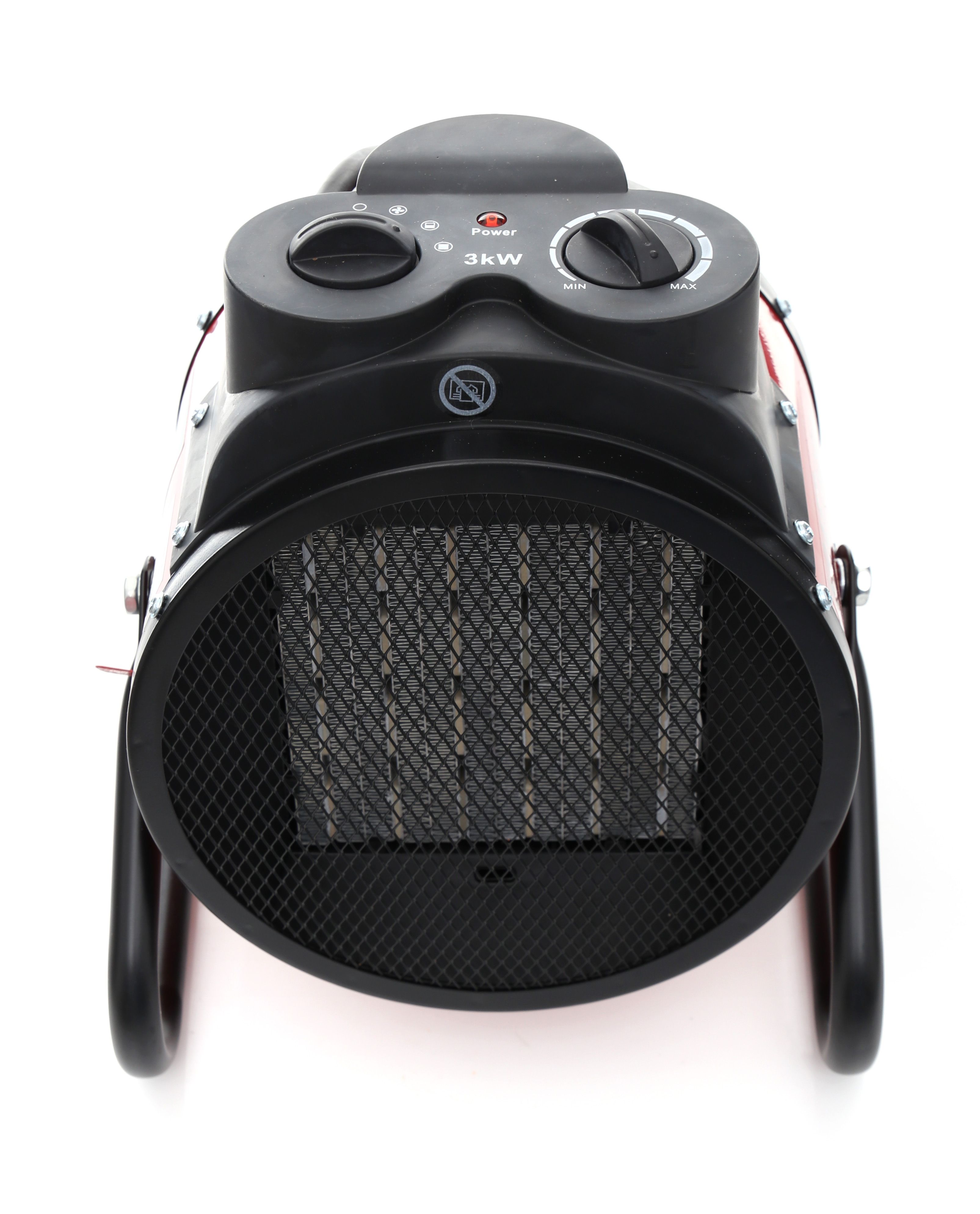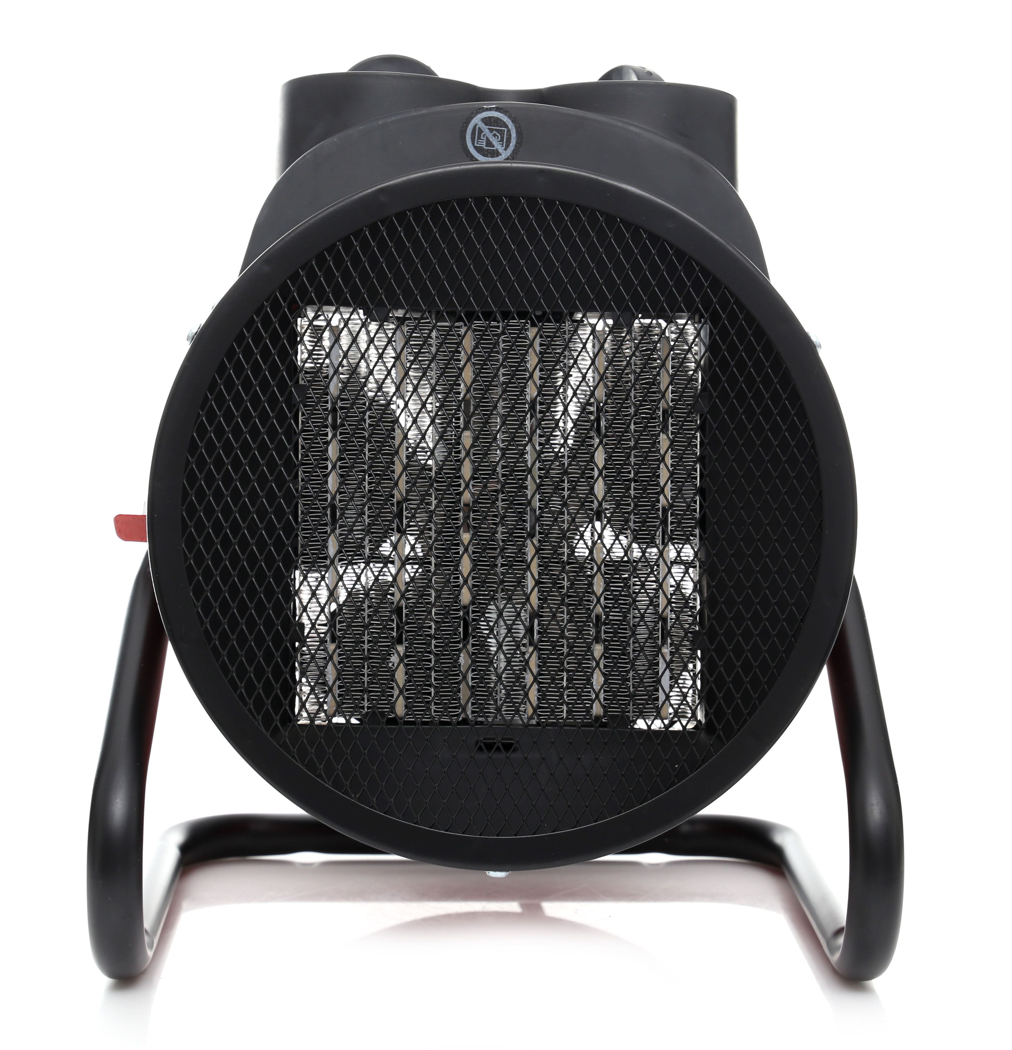 W tej nagrzewnicy elektrycznej przełączasz się między wentylacją, 50% i 100% mocy, co ułatwia pracę w zmiennych warunkach.