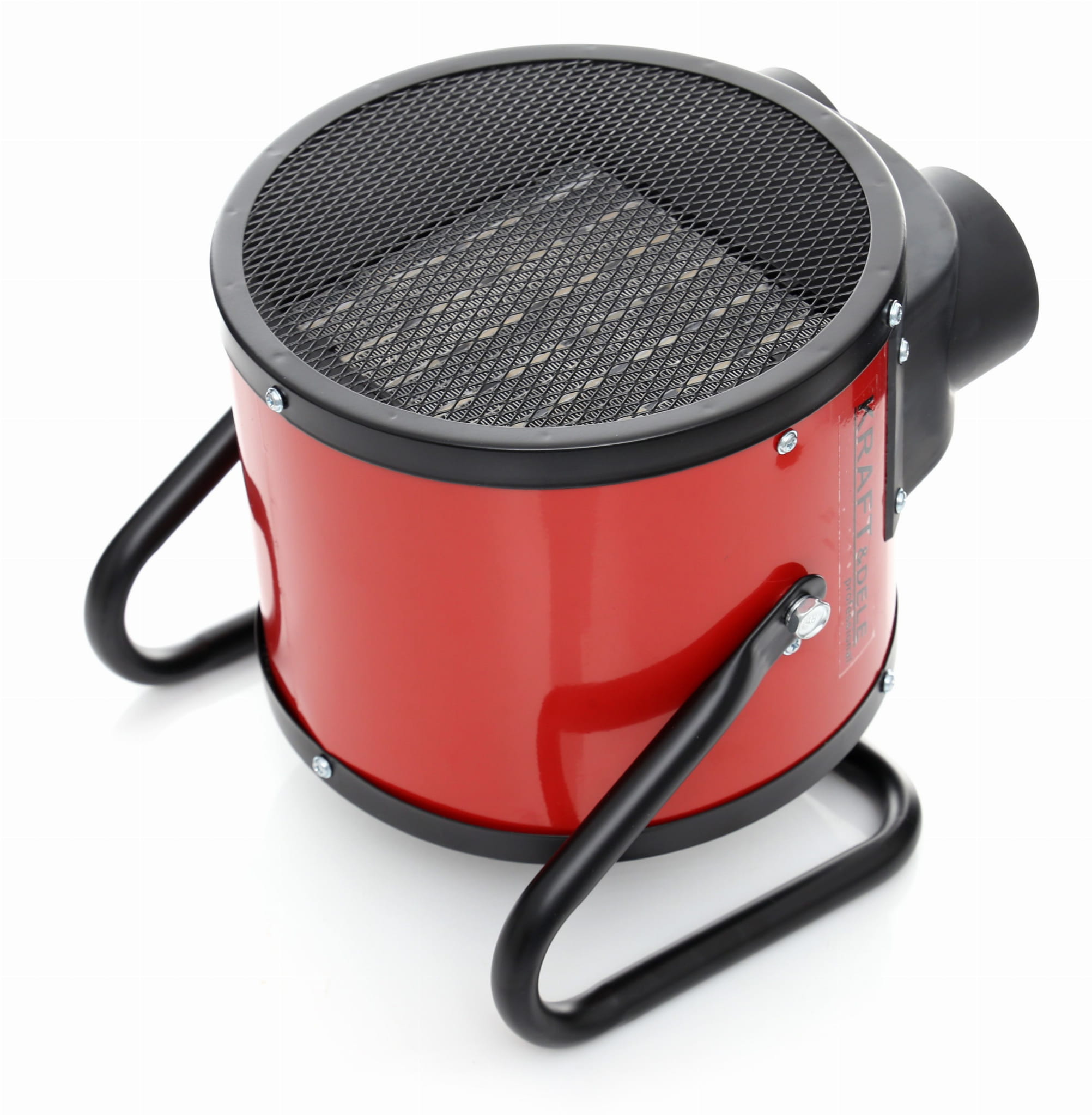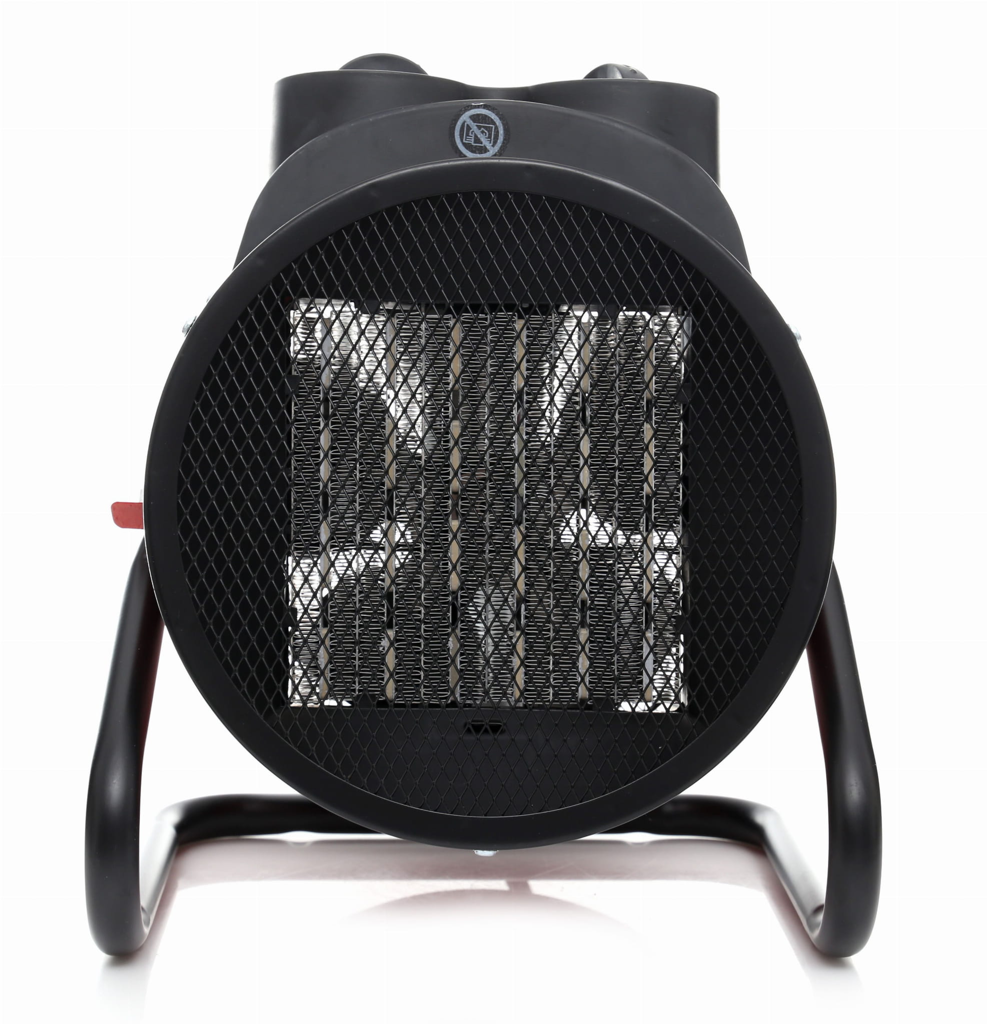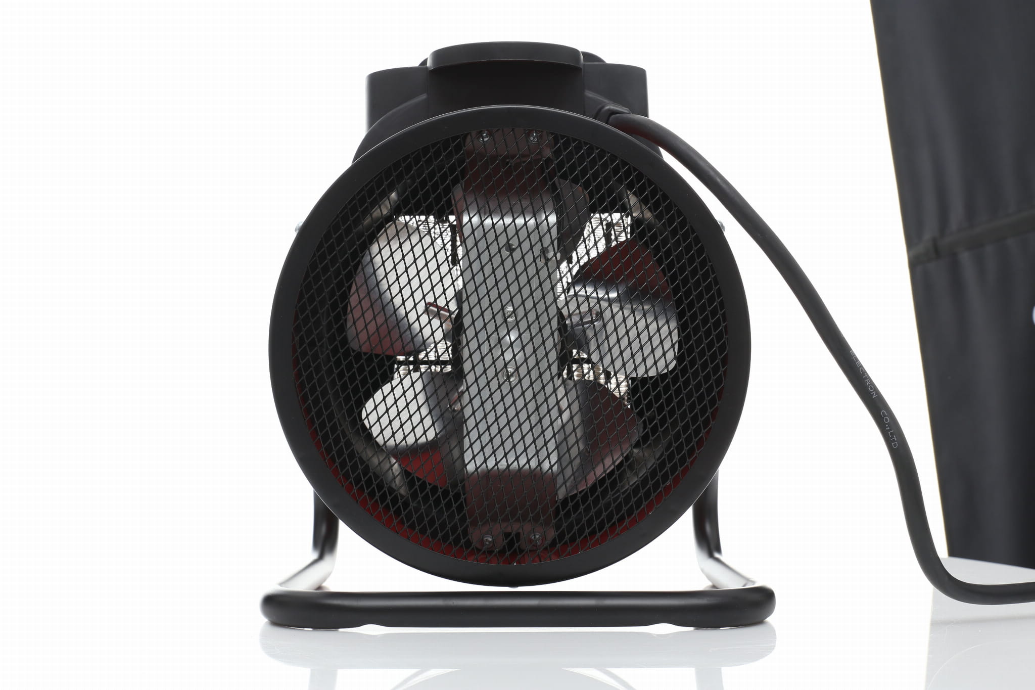 Przenośna nagrzewnica elektryczna z grzałką PTC o mocy 3000 W, przeznaczona do ogrzewania i osuszania małych oraz średnich pomieszczeń użytkowych. Pracuje wyłącznie na prądzie elektrycznym — nie emituje spalin ani pary wodnej.