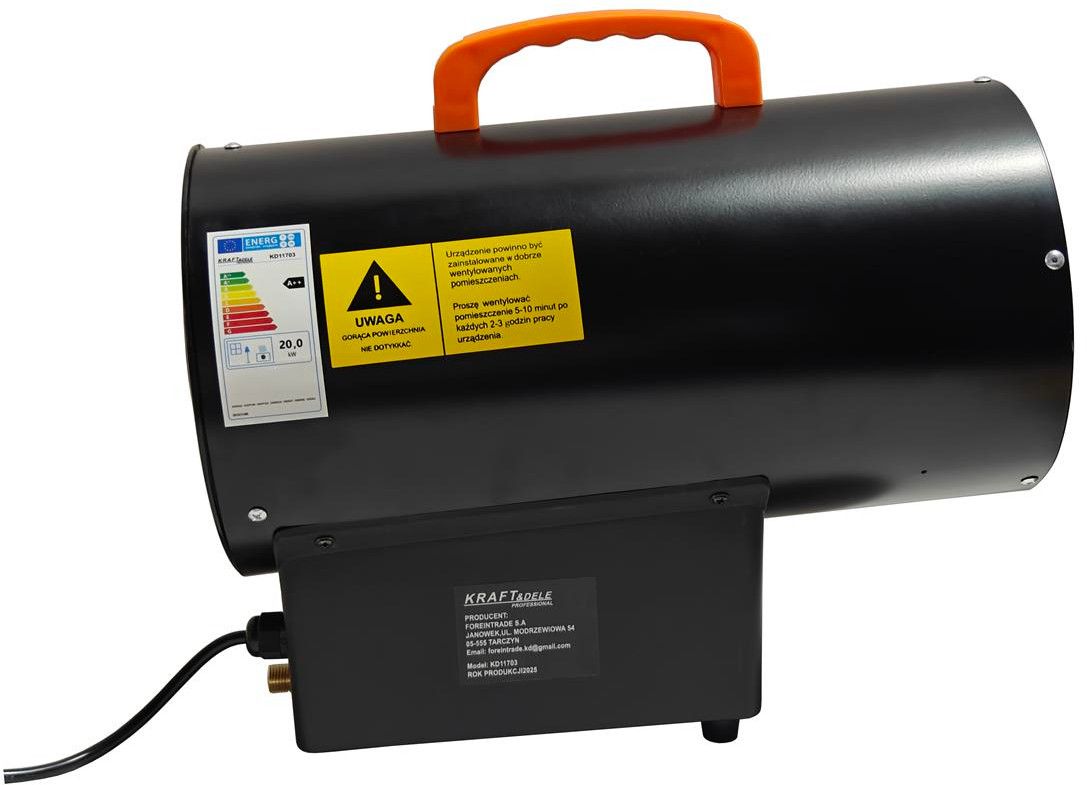 Nagrzewnica gazowa 20kW KRAFT&DELE KD11703 to praktyczne urządzenie do szybkiego dogrzewania warsztatu, budowy i przestrzeni magazynowych. Jeśli szukasz modelu KD11703, który łączy prostą obsługę z wydajnym nadmuchem i zasilaniem LPG, to rozwiązanie będzie trafnym wyborem przy zapewnieniu prawidłowej wentylacji.