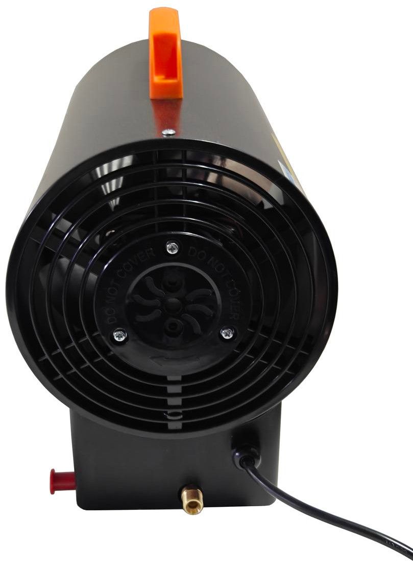 Nagrzewnica gazowa szybko zasysa powietrze wentylatorem i wydmuchuje je po ogrzaniu, co skraca czas dogrzewania.