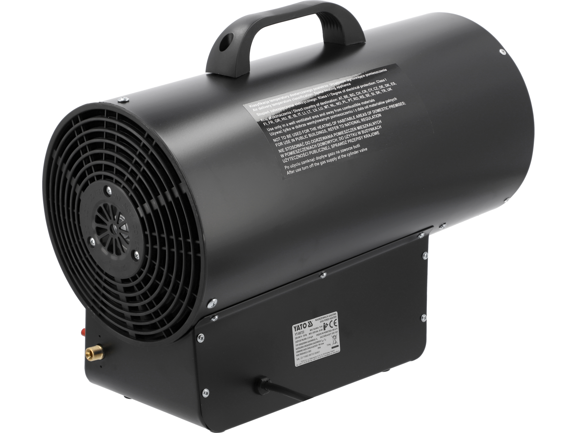 Nagrzewnica współpracuje z butlami gazowymi propan-butan (G30/G31). W zestawie znajduje się reduktor ciśnienia oraz wąż o długości 1.5 m. Przed uruchomieniem należy sprawdzić szczelność połączeń przy użyciu płynu kontrolnego. Ciśnienie robocze wynosi 0.7 bar.