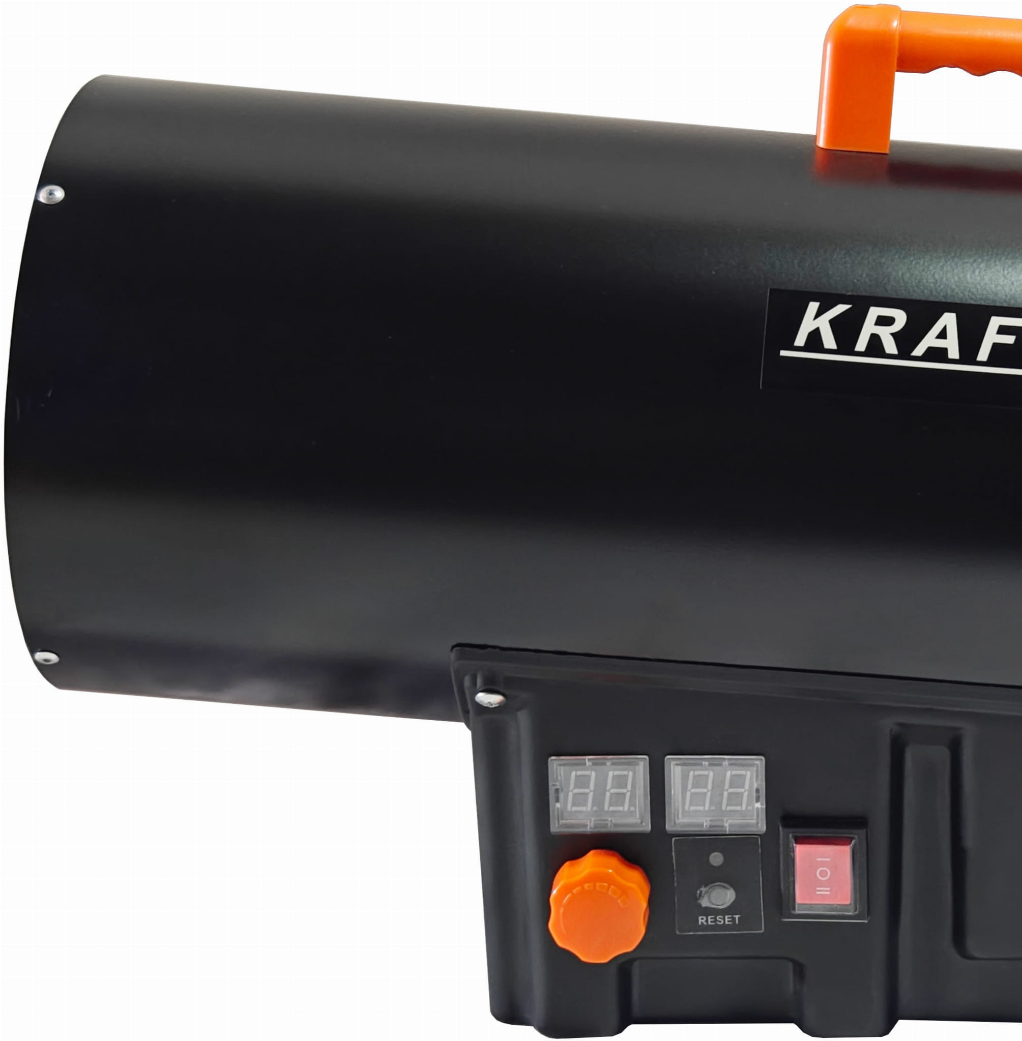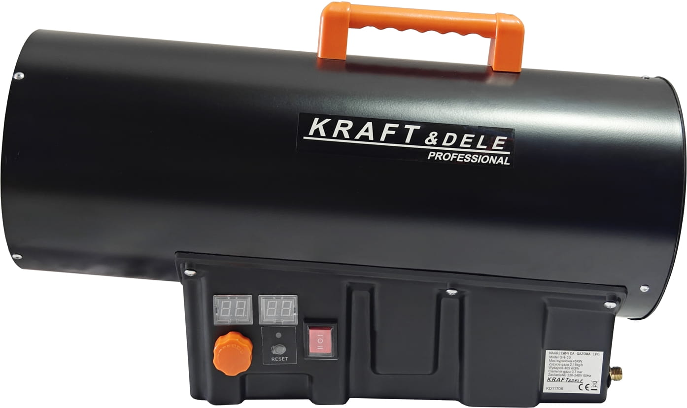 KD11706 to nagrzewnica gazowa zasilana gazem propan-butan (LPG), przeznaczona do ogrzewania średnich i dużych przestrzeni użytkowych. Wyposażona w cyfrowy termostat z wyświetlaczem LCD, pracuje automatycznie — utrzymując zadaną temperaturę bez konieczności ręcznej interwencji.