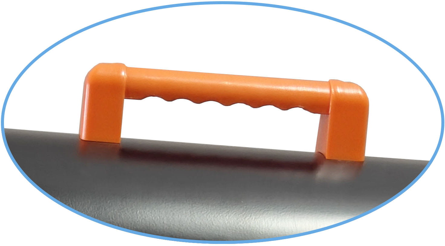 Stalowa konstrukcja obudowy zapewnia odporność na uszkodzenia mechaniczne w warunkach przemysłowych i budowlanych. Wbudowane zabezpieczenie termiczne chroni urządzenie przed przegrzaniem podczas długotrwałej pracy ciągłej.