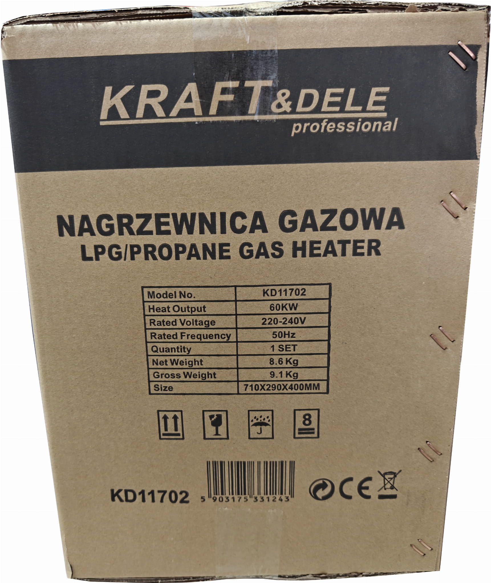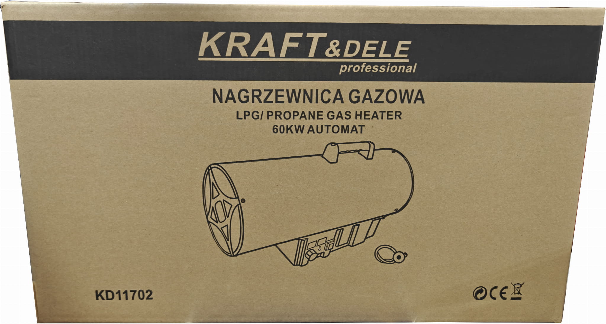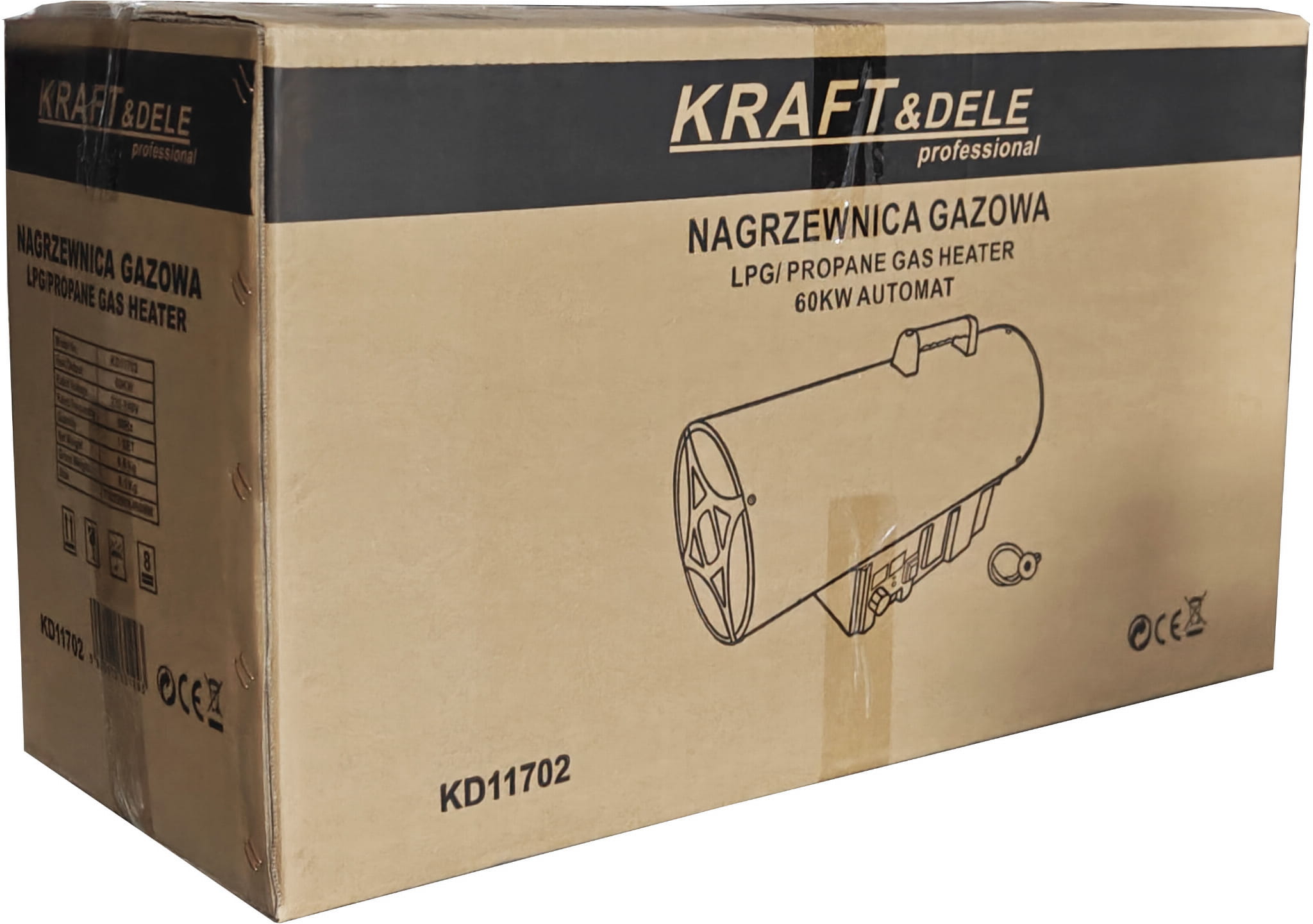 KD11702 to nagrzewnica gazowa zasilana gazem propan-butan (LPG), przeznaczona do ogrzewania dużych, nieogrzewanych lub trudno dostępnych przestrzeni. Moc 60 kW i wydatek powietrza 872 m³/h pozwalają na szybkie podniesienie temperatury w pomieszczeniach o znacznej kubaturze bez konieczności podłączania do instalacji kominowej.