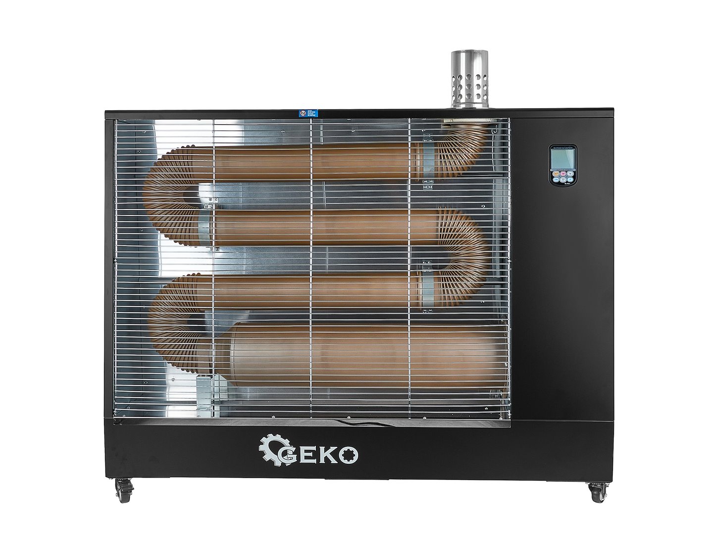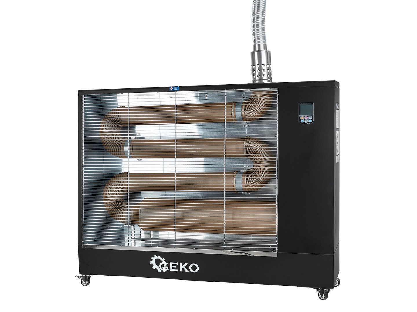 Mobilna nagrzewnica olejowa zasilana naftą lub olejem napędowym, wyposażona w element grzejny na podczerwień. Urządzenie przeznaczone do ogrzewania dużych, nieogrzewanych pomieszczeń przemysłowych i technicznych — z wyświetlaczem LCD, pilotem zdalnego sterowania oraz zbiornikiem o pojemności 42 litrów zapewniającym wielogodzinną pracę bez uzupełniania paliwa.