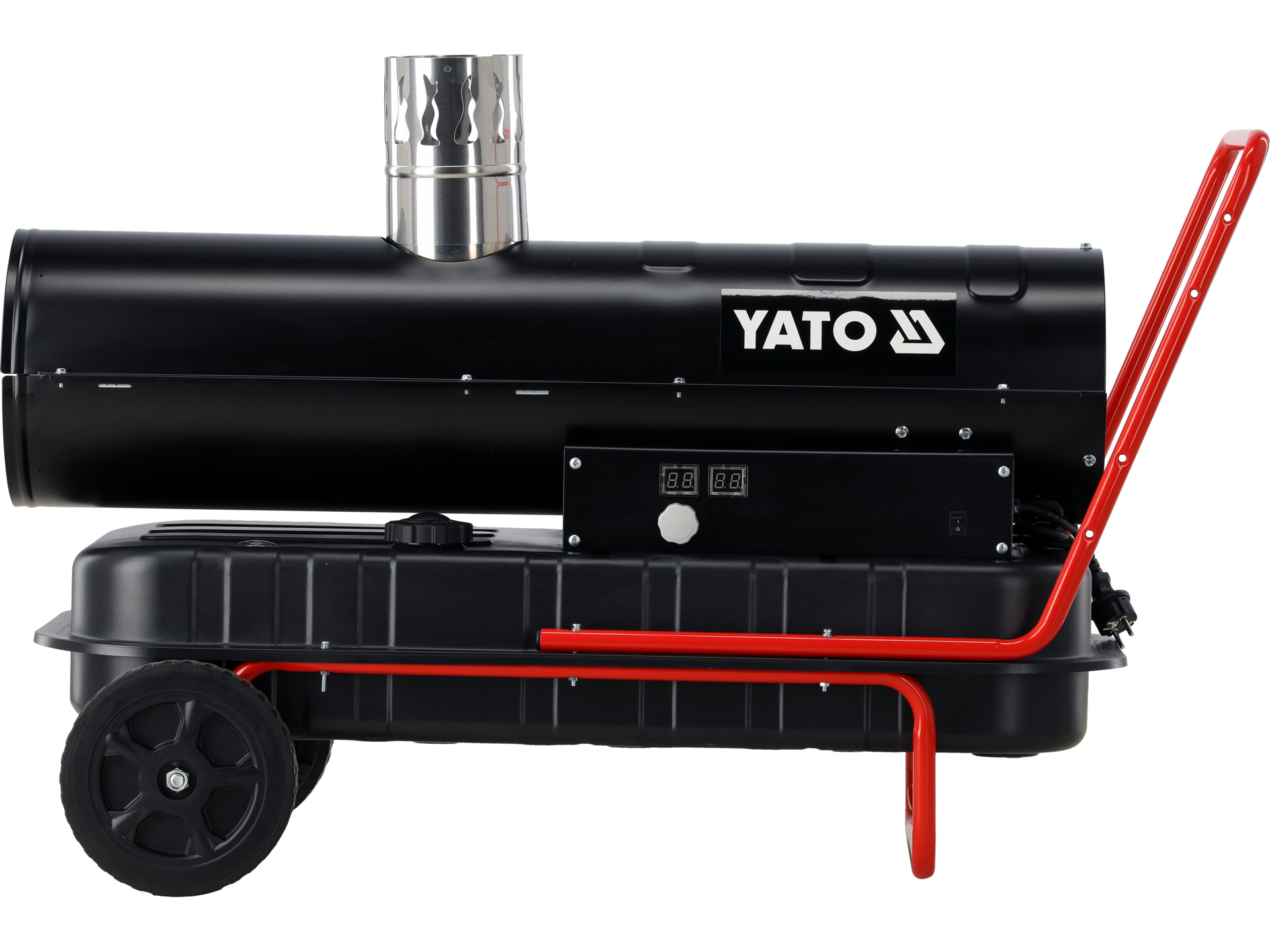 Przenośna nagrzewnica olejowa o mocy cieplnej 30 kW przeznaczona do ogrzewania pomieszczeń użyteczności publicznej o powierzchni do 300 m². Urządzenie wyposażono w ręczny termostat z wyświetlaczem LED oraz czujnik zaniku płomienia zapewniający bezpieczną eksploatację.