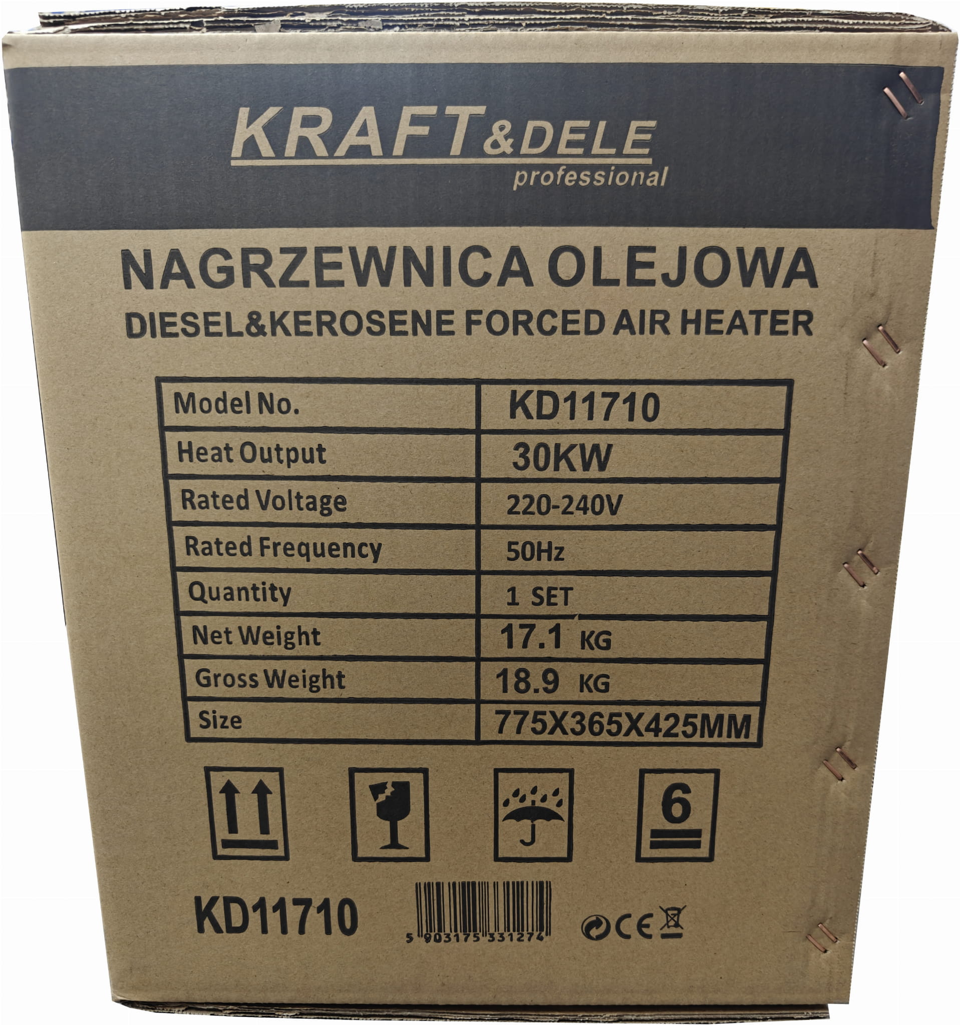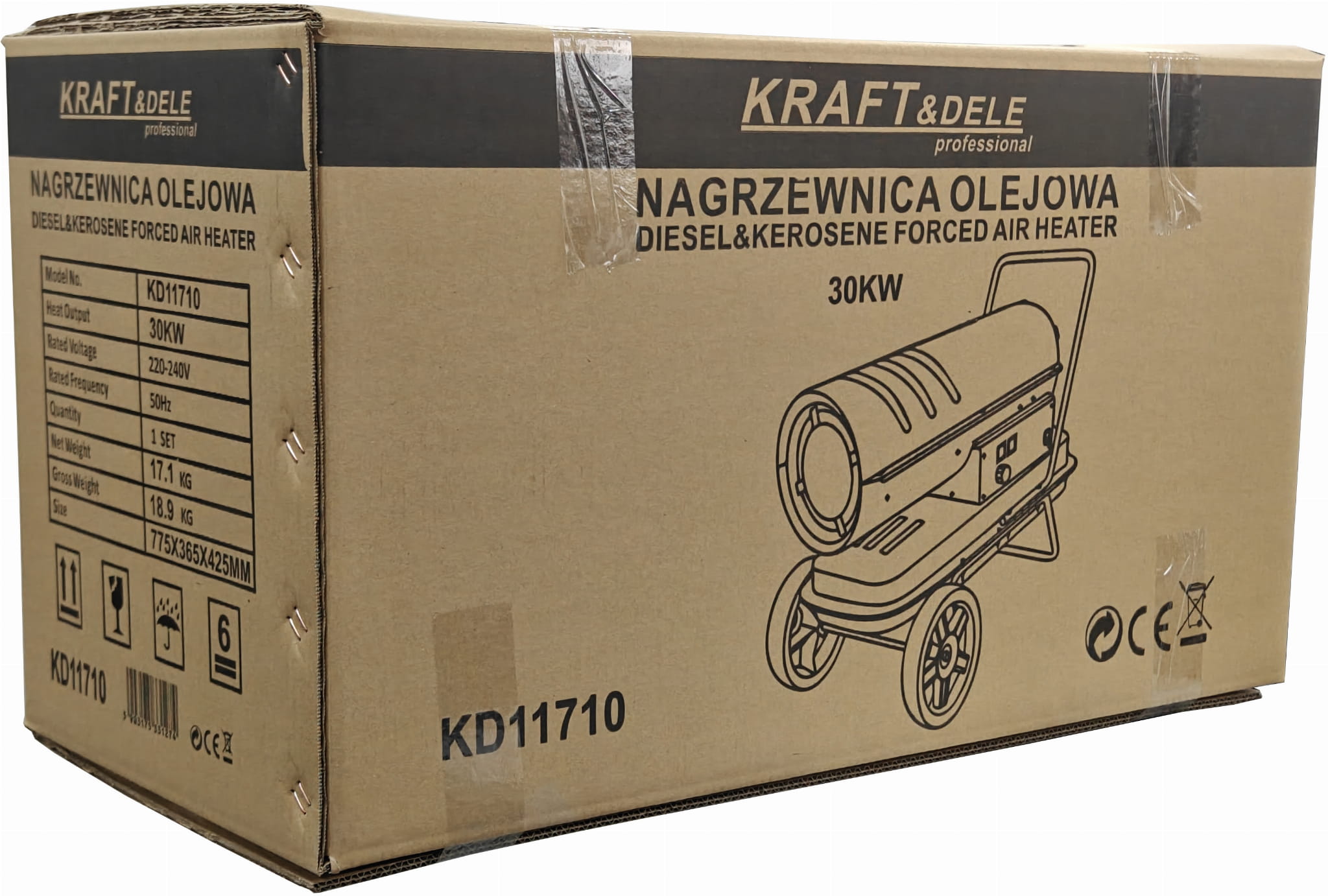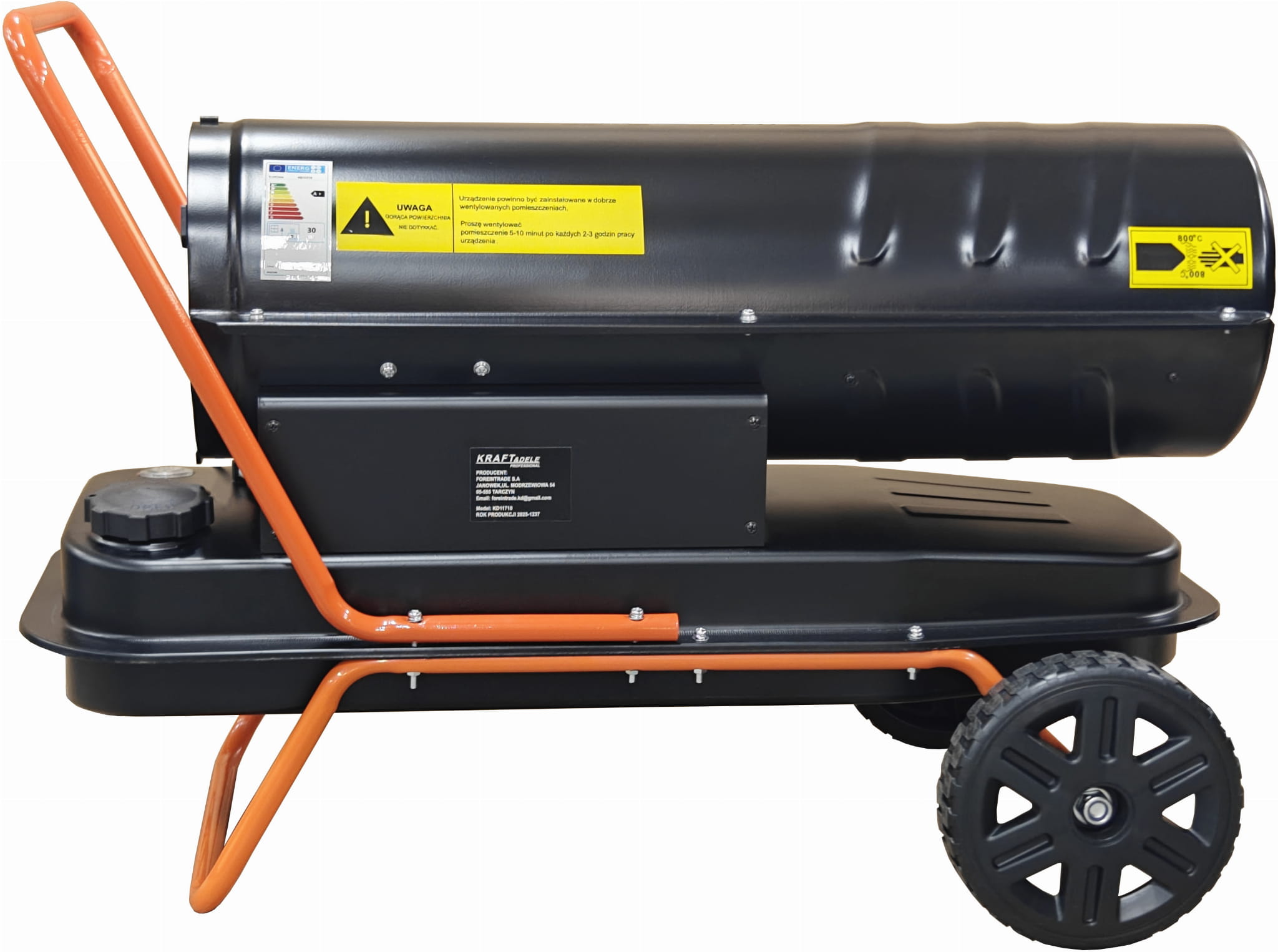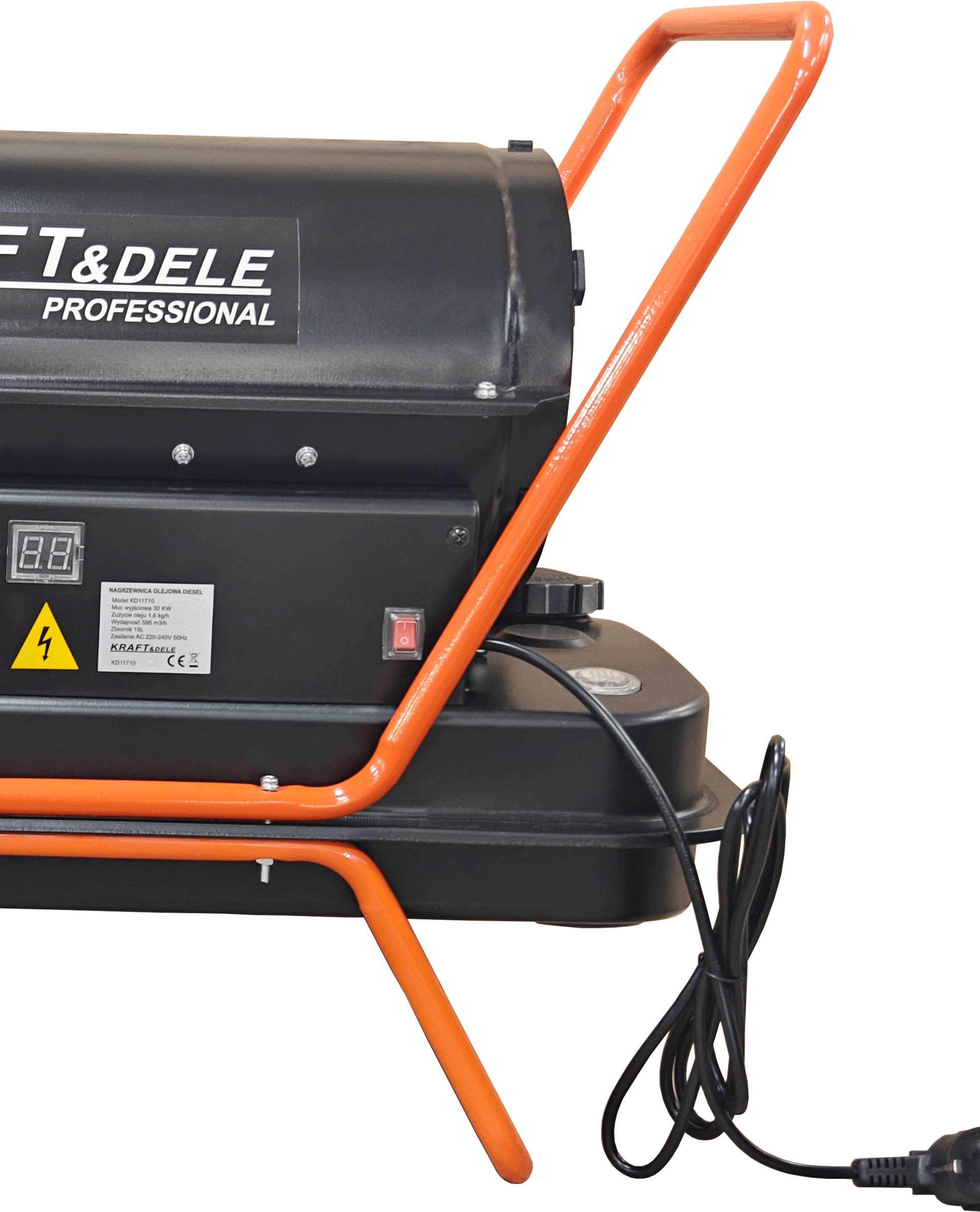KD11710 to nagrzewnica olejowa zasilana olejem napędowym ON, przeznaczona do intensywnego ogrzewania dużych przestrzeni użytkowych. Wyposażona w cyfrowy termostat z wyświetlaczem LCD, pracuje automatycznie — utrzymuje zadaną temperaturę bez konieczności ciągłego nadzoru.