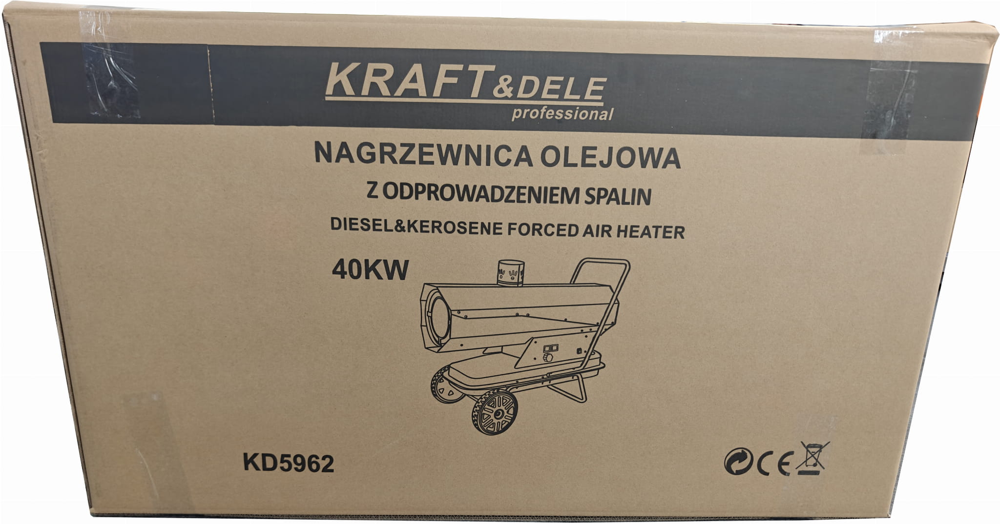 Model KD5962 to nagrzewnica bezpośredniego spalania — produkty spalania (para wodna, CO₂) trafiają bezpośrednio do ogrzewanego pomieszczenia. Urządzenie wymaga zapewnienia odpowiedniej wentylacji podczas pracy. Nie nadaje się do stosowania w pomieszczeniach szczelnie zamkniętych ani w miejscach, gdzie przebywają ludzie przez dłuższy czas bez dostępu świeżego powietrza.