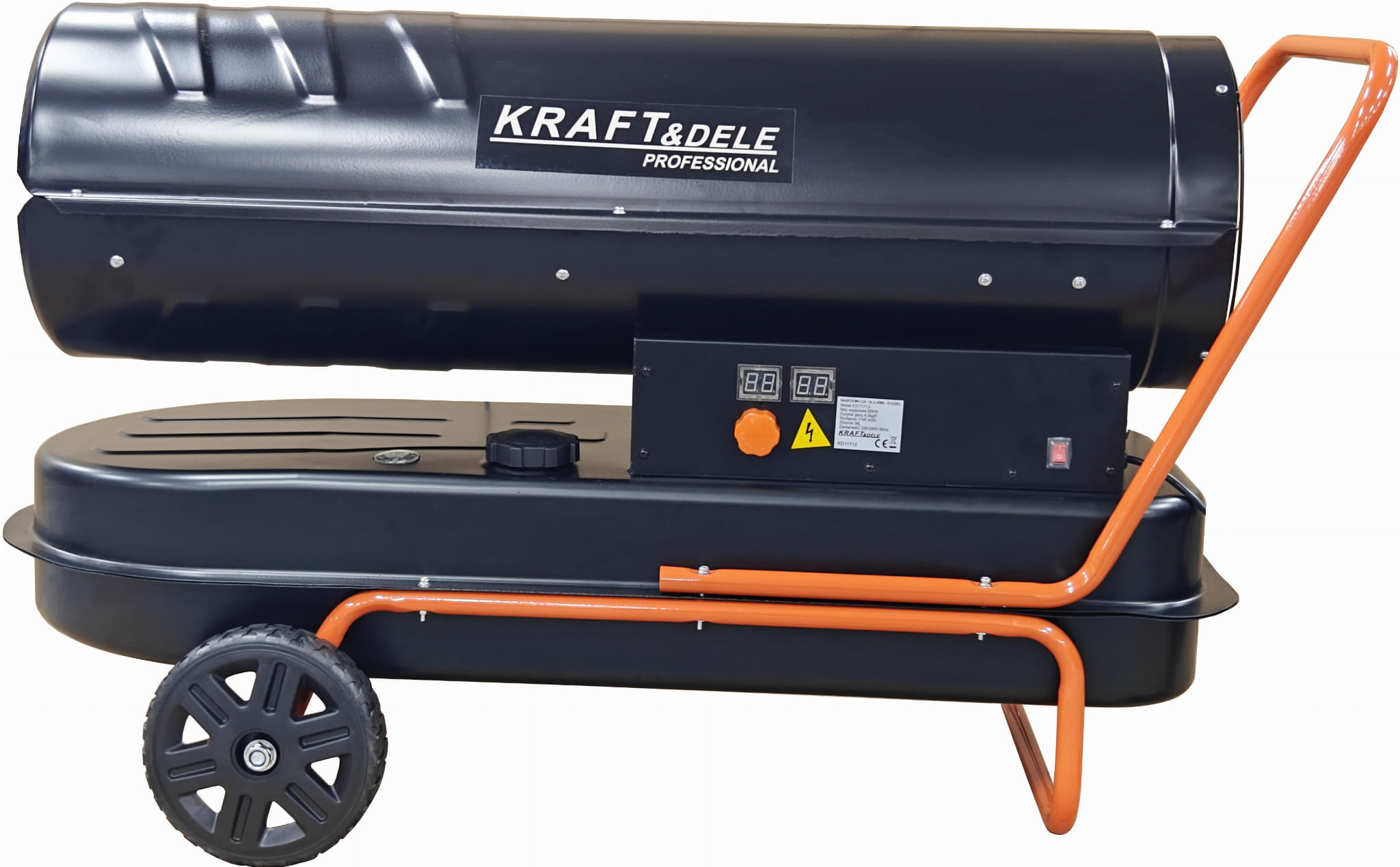 KD11712 to nagrzewnica olejowa zasilana olejem napędowym (ON/diesel), przeznaczona do ogrzewania dużych przestrzeni przemysłowych i gospodarczych. Moc 60 kW oraz wydatek powietrza 1100 m³/h pozwalają na szybkie wyrównanie temperatury w obiektach o znacznej kubaturze. Wbudowany cyfrowy termostat umożliwia automatyczne sterowanie pracą urządzenia bez konieczności stałego nadzoru.