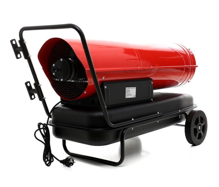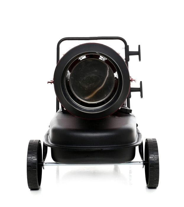 W zestawie znajduje się stelaż wyposażony w kółka. Dzięki temu nagrzewnicę o wadze 28 kg można swobodnie przemieszczać między pomieszczeniami lub strefami roboczymi bez konieczności użycia dodatkowego sprzętu.