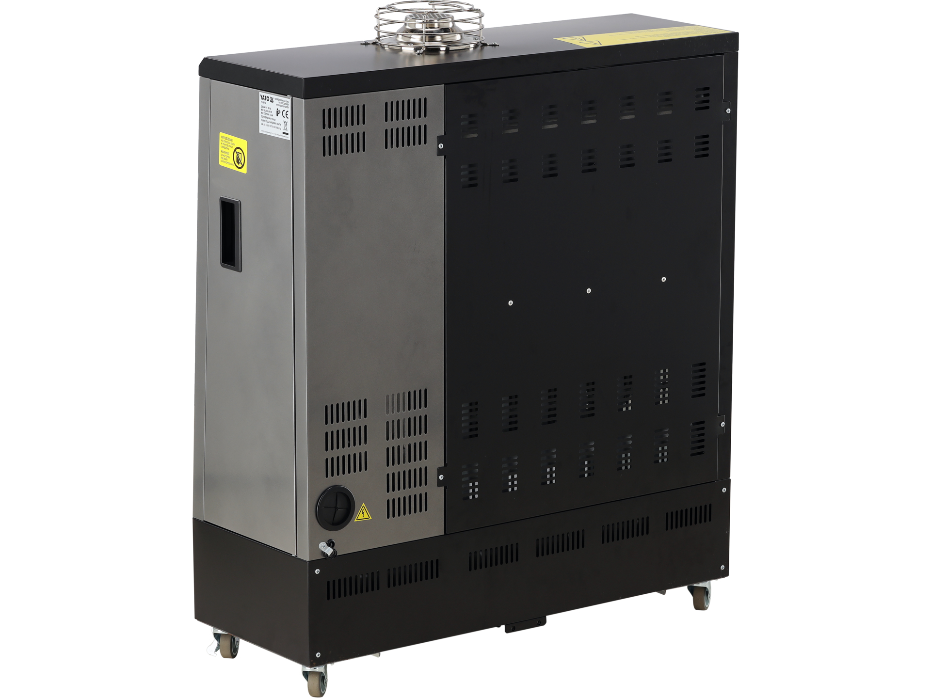 Obudowa wykonana z metalu malowanego proszkowo zapewnia odporność na uszkodzenia mechaniczne i korozję. Wymiary 82 × 42,6 × 101 cm i waga 36,6 kg umożliwiają przemieszczanie urządzenia między lokalizacjami. Przewód zasilający o długości 1,2 m pozwala na elastyczne ustawienie nagrzewnicy.