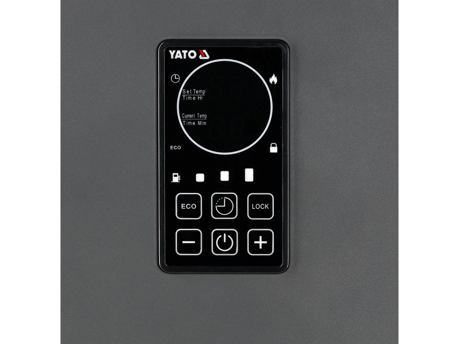 Urządzenie wyposażono w ręczny termostat umożliwiający ustawienie docelowej temperatury w zakresie 0-55°C oraz timer pozwalający zaprogramować czas pracy od 1 do 24 godzin. Cyfrowy wyświetlacz LED pokazuje bieżące parametry pracy, ułatwiając kontrolę nad urządzeniem.