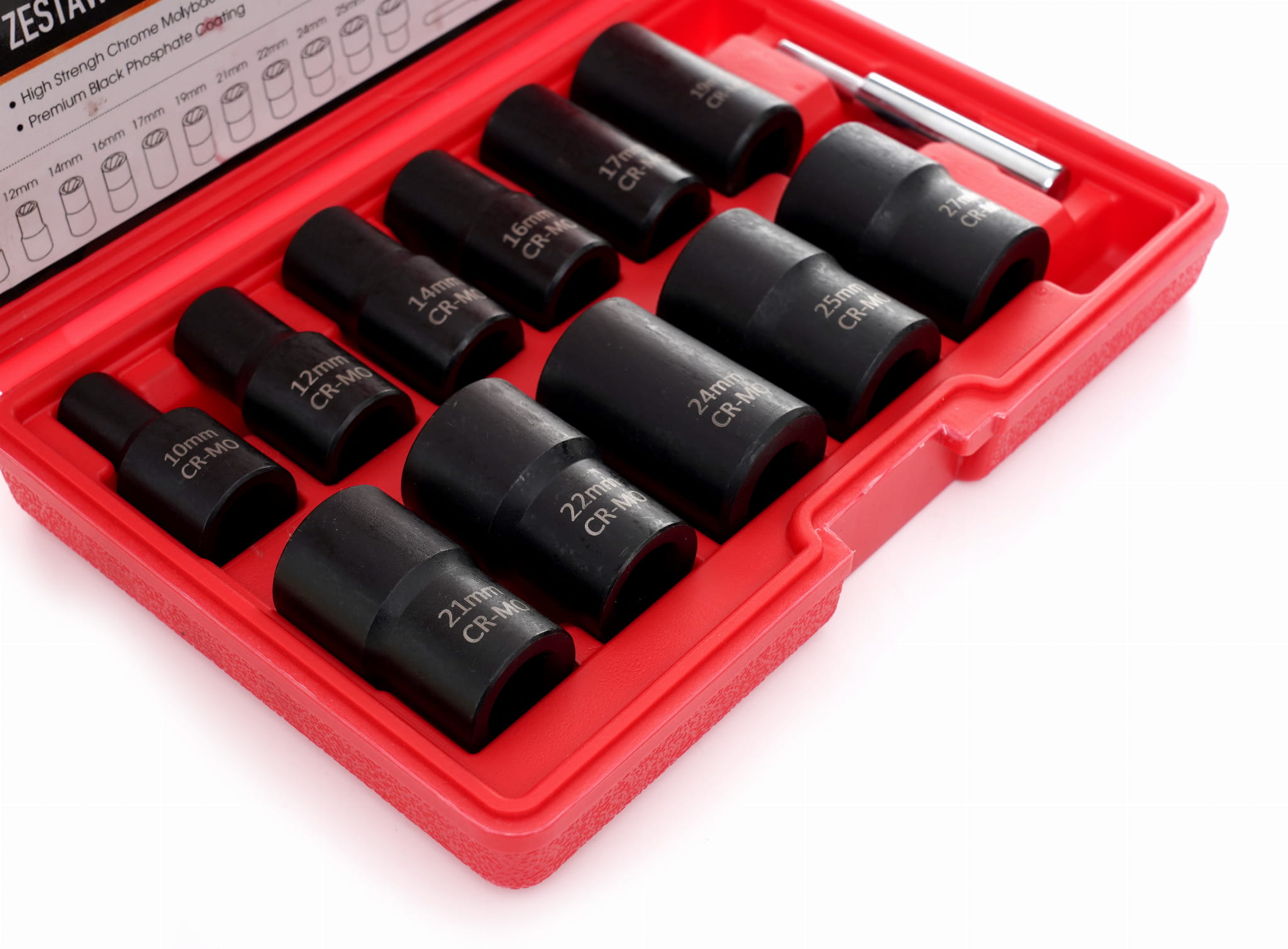 | Liczba elementów | 12 szt. (11 nasadek + 1 wybijak) |