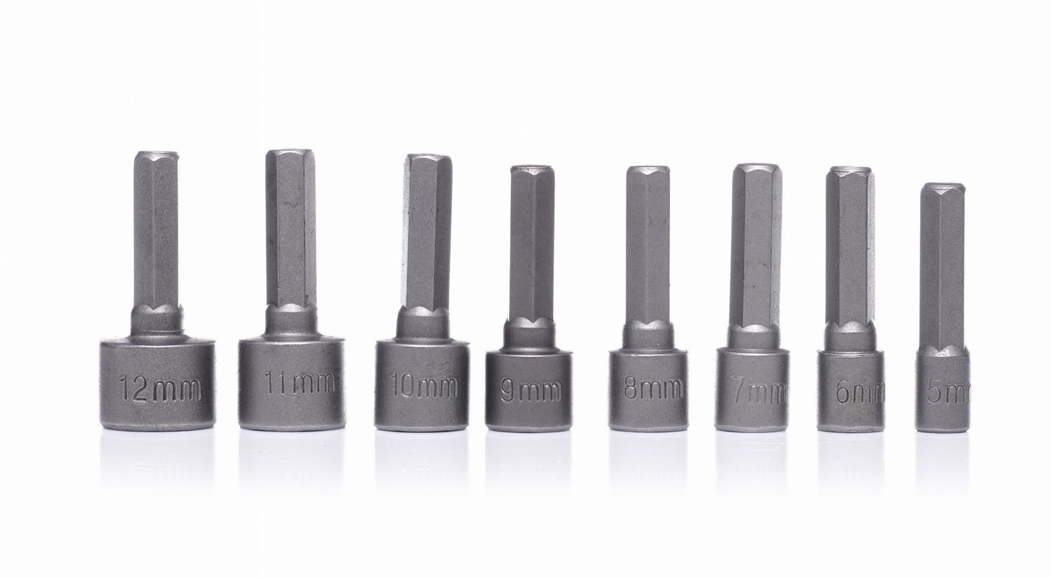 W zestawie znajdują się adaptery o długościach 25, 30, 50, 65 i 72 mm. Krótsze wersje sprawdzają się tam, gdzie zależy na zwartości zestawu, dłuższe pozwalają sięgnąć do śrub i nakrętek umieszczonych głębiej lub w miejscach o ograniczonym dostępie.