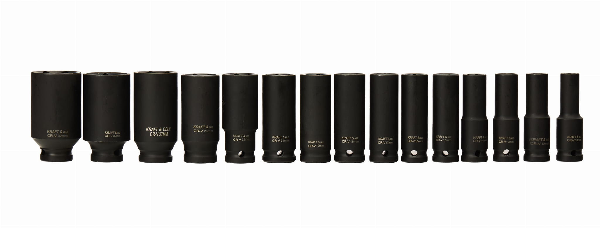 Zestaw długich nasadek udarowych Kraft&Dele KD11769 przeznaczony do współpracy z kluczami pneumatycznymi i elektrycznymi kluczami udarowymi. Nasadki wykonano ze stali chromowo-molibdenowej (Cr-Mo), co zapewnia odporność na wysokie momenty obrotowe i zmienne obciążenia udarowe — warunki typowe dla serwisów opon i warsztatów samochodowych.
