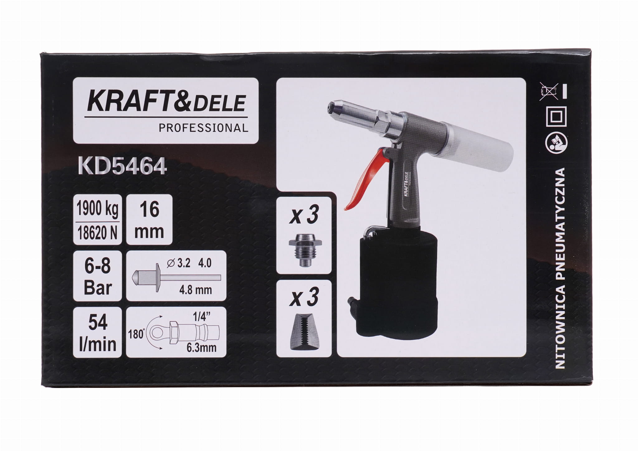 | Obsługiwane średnice nitów | 3,2 mm / 4,0 mm / 4,8 mm |