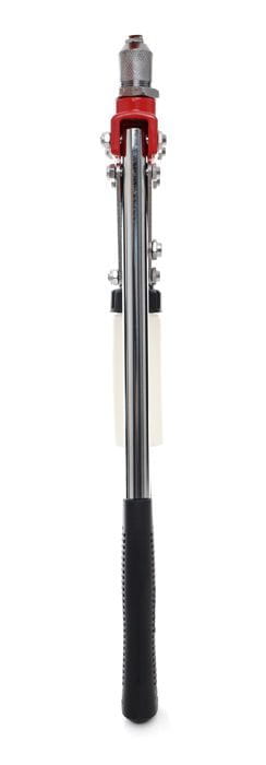 Nitownica ręczna o długości 17 cali przeznaczona do nitowania na zimno z użyciem nitów zrywalnych. Stalowy korpus i aluminiowe uchwyty zapewniają trwałość konstrukcji przy stosunkowo niskiej wadze narzędzia. W zestawie znajdują się wymienne końcówki dyszy umożliwiające pracę z nitami różnych średnic.