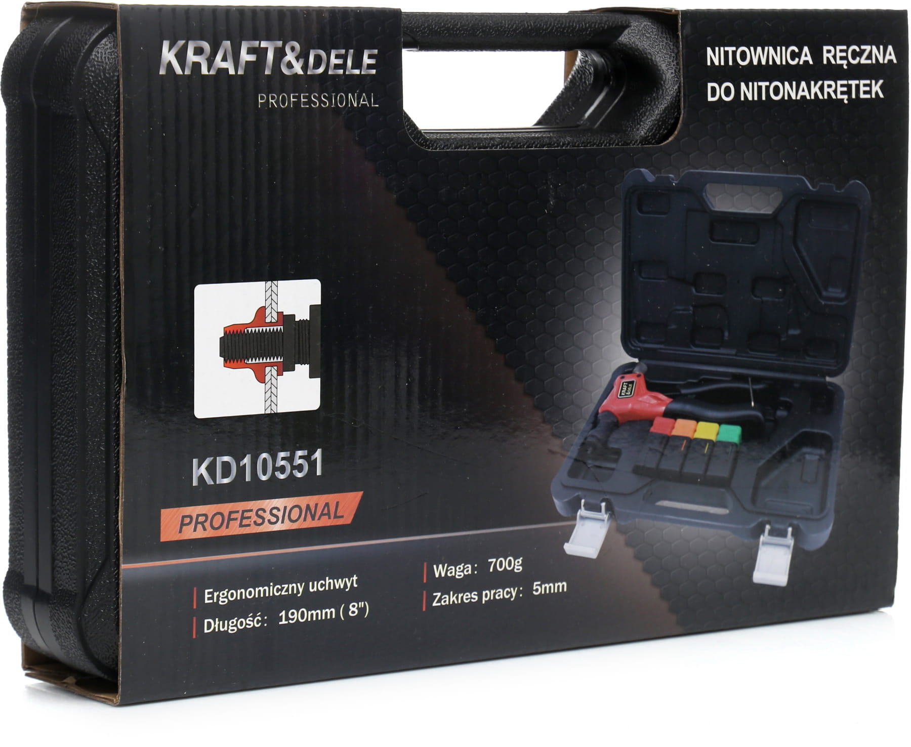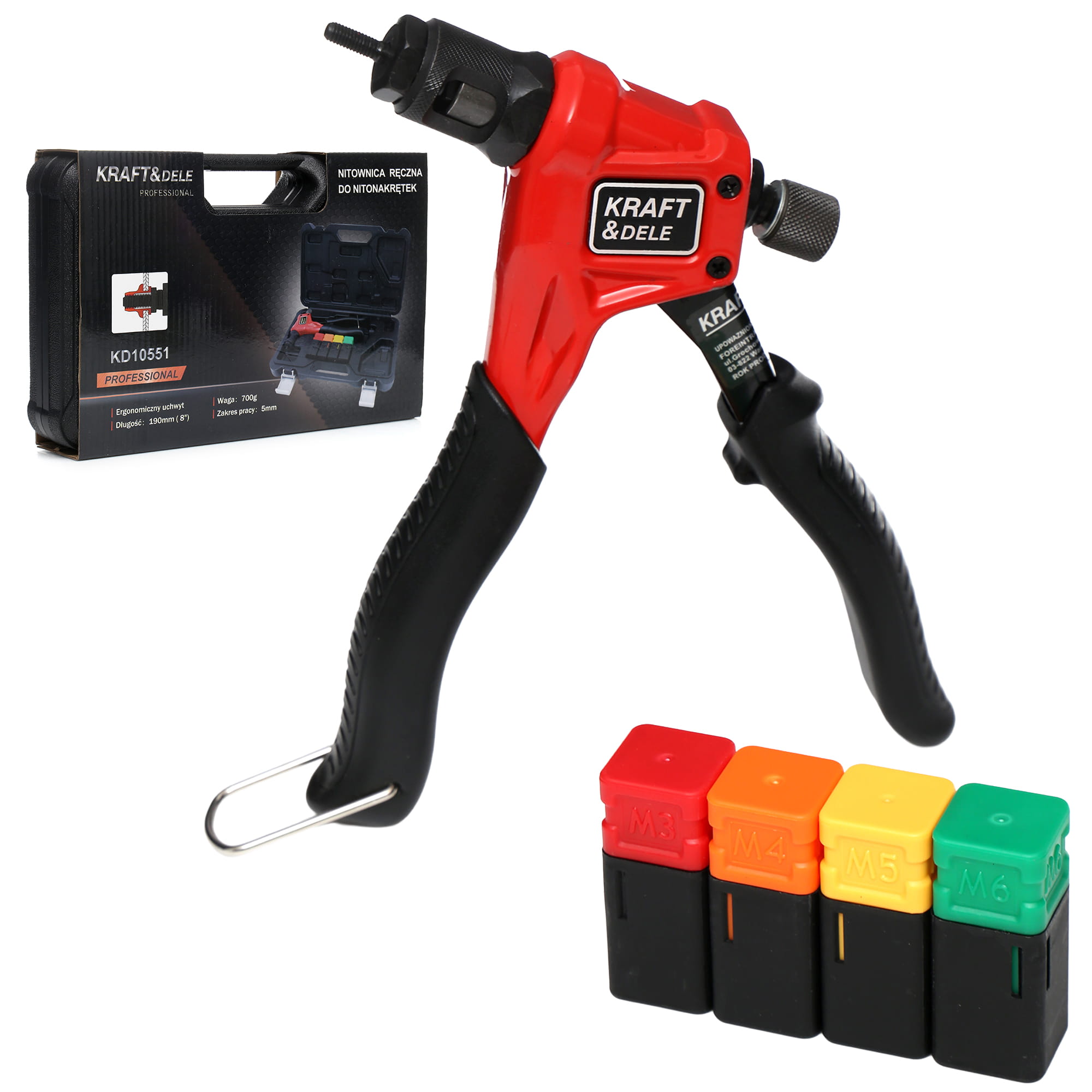 | Zawartość zestawu | Nitownica, końcówki M3/M4/M5/M6, walizka transportowa |