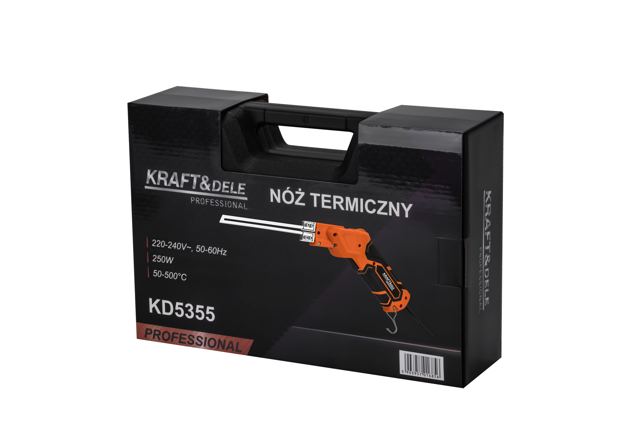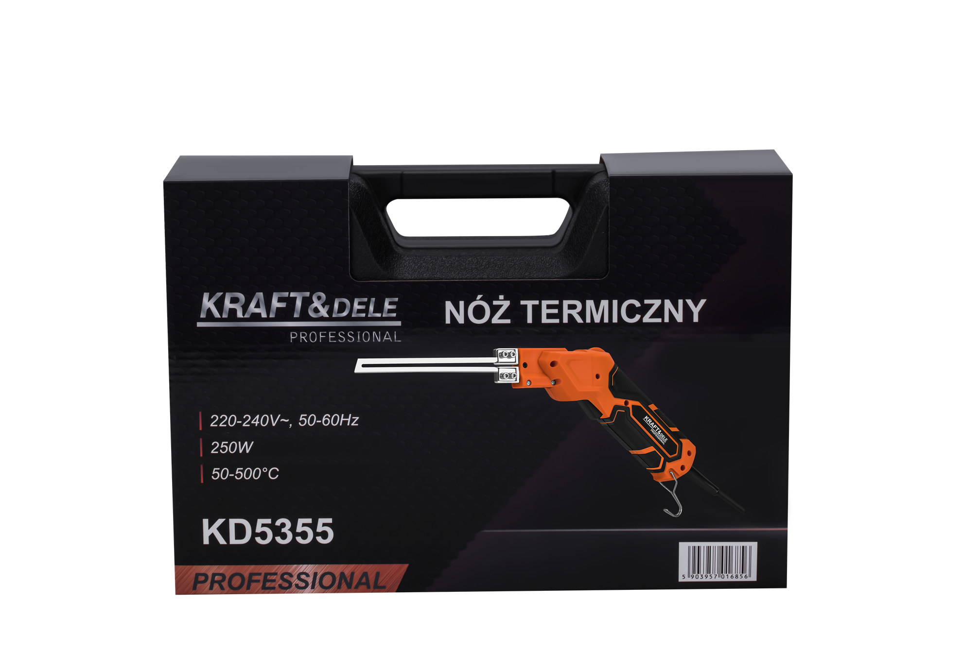 KD5355 to elektryczny nóż termiczny przeznaczony do cięcia tworzyw sztucznych metodą termiczną. Nagrzane ostrze przetapia materiał wzdłuż linii cięcia, eliminując postrzępione krawędzie charakterystyczne dla narzędzi mechanicznych. Urządzenie pracuje przy standardowym napięciu sieciowym 220–240V.