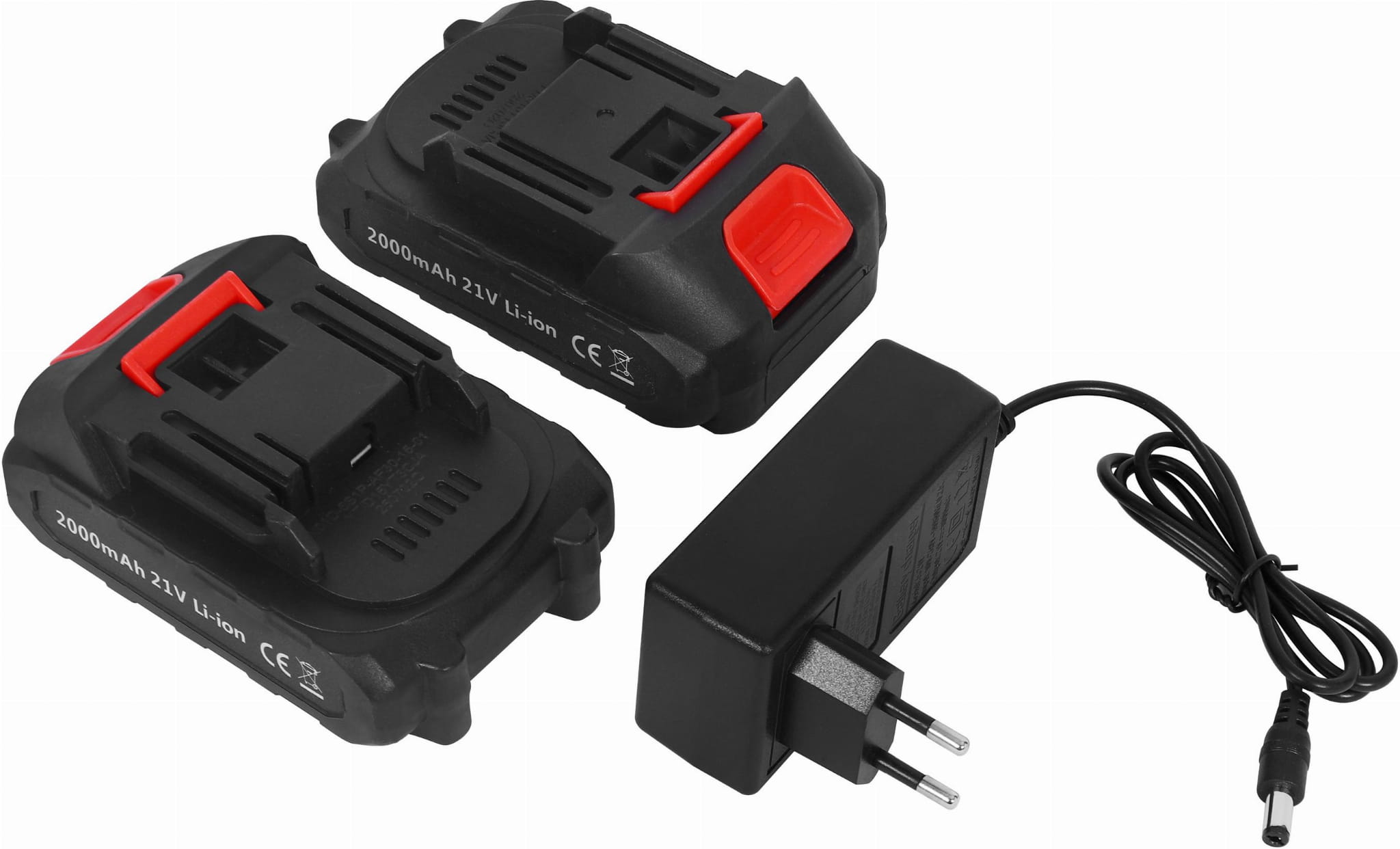Zestaw zawiera dwa akumulatory 21V/2000mAh. Podczas gdy jeden jest w użyciu, drugi można ładować — eliminuje to przestoje w pracy, szczególnie istotne przy większych powierzchniach zieleni lub pracy zawodowej.