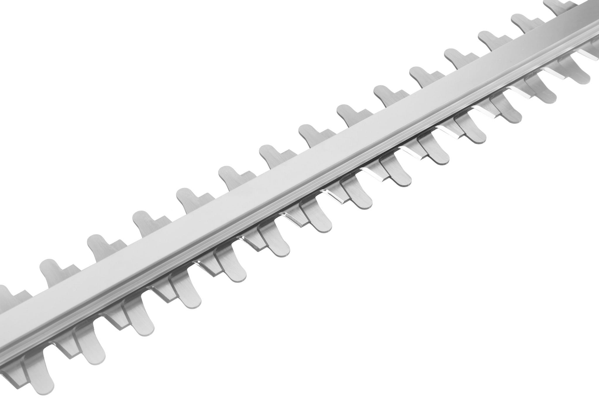 Długość ostrza 480 mm pozwala na cięcie szerokich pasów żywopłotu w jednym przejściu, co skraca czas pracy. Kąt cięcia 45° umożliwia formowanie skosów i ukośnych krawędzi bez zmiany pozycji ciała.