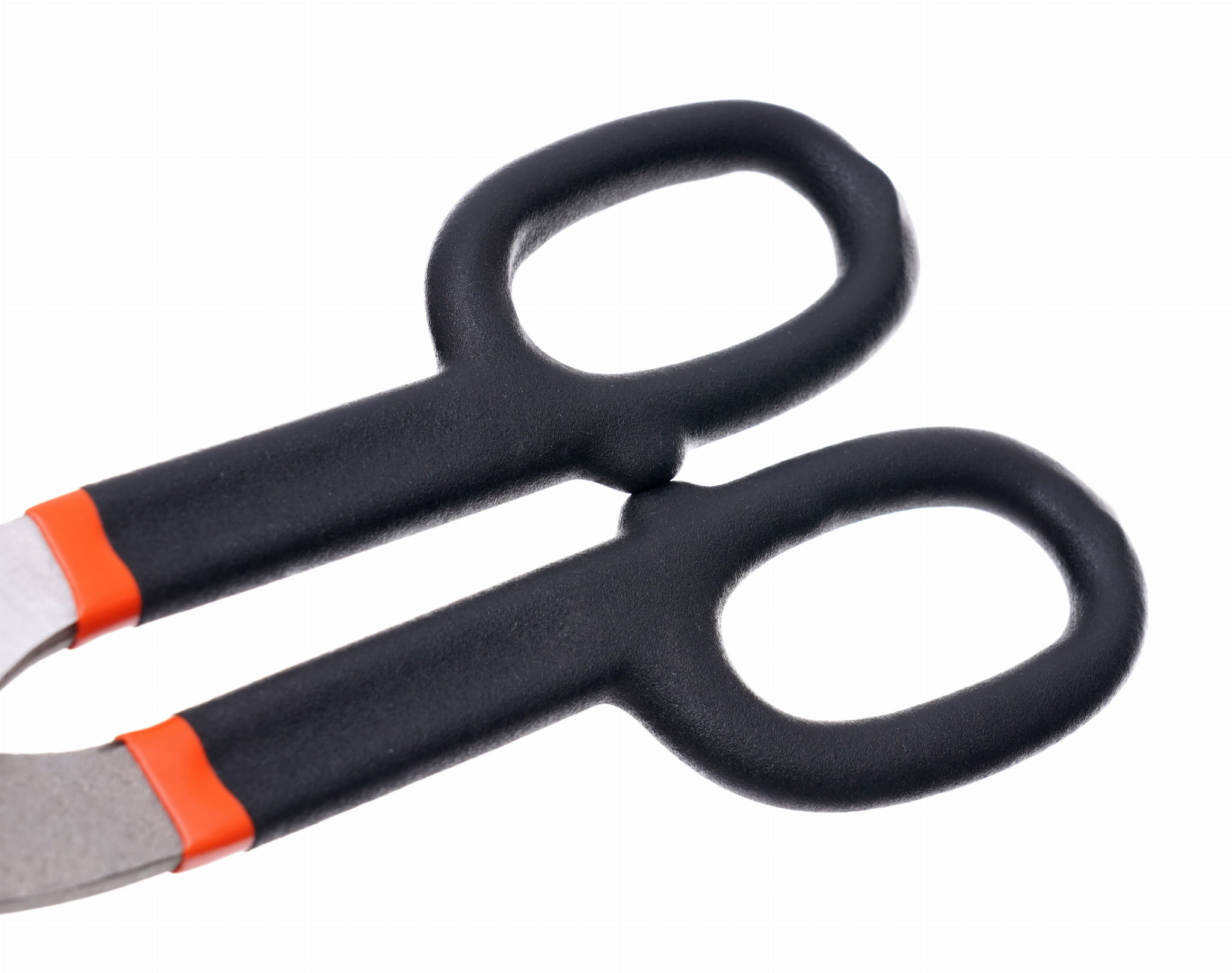 Gumowe okładziny rękojeści zwiększają tarcie między dłonią a narzędziem, co ogranicza ryzyko poślizgu podczas cięcia. Ma to znaczenie szczególnie przy pracy z materiałami wymagającymi większego nacisku lub w warunkach warsztatowych, gdzie ręce mogą być zanieczyszczone.