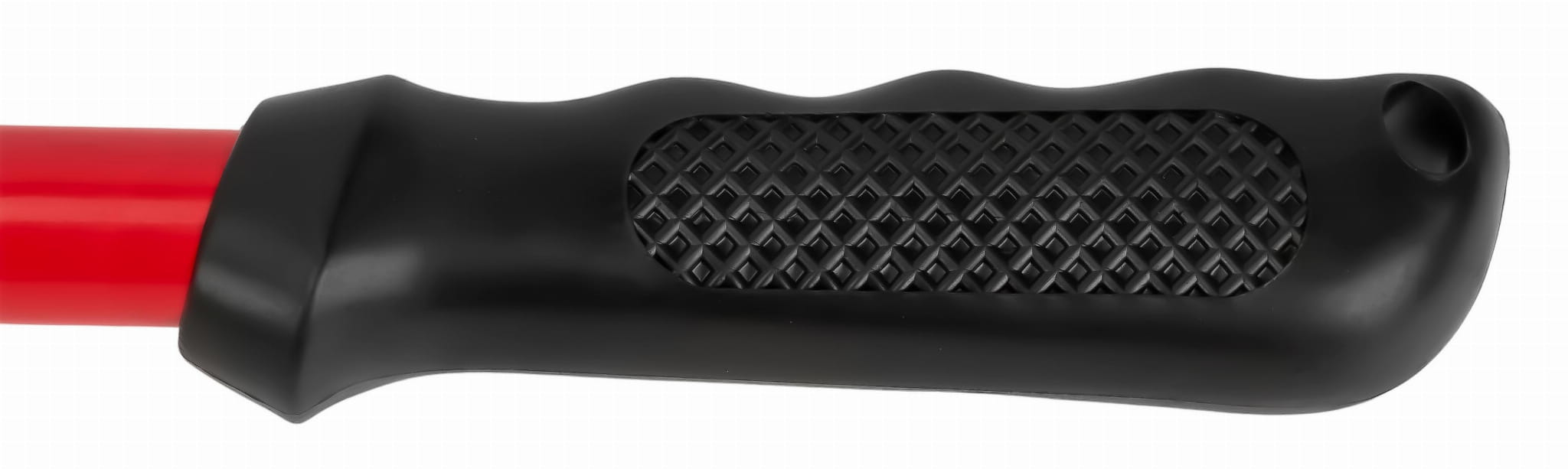 Gumowa powłoka rękojeści zwiększa tarcie między dłonią a narzędziem, co ma szczególne znaczenie przy pracy w rękawicach lub w warunkach wilgotnych. Ergonomiczne ukształtowanie uchwytu pozwala na pewne trzymanie narzędzia przez dłuższy czas bez nadmiernego zmęczenia.