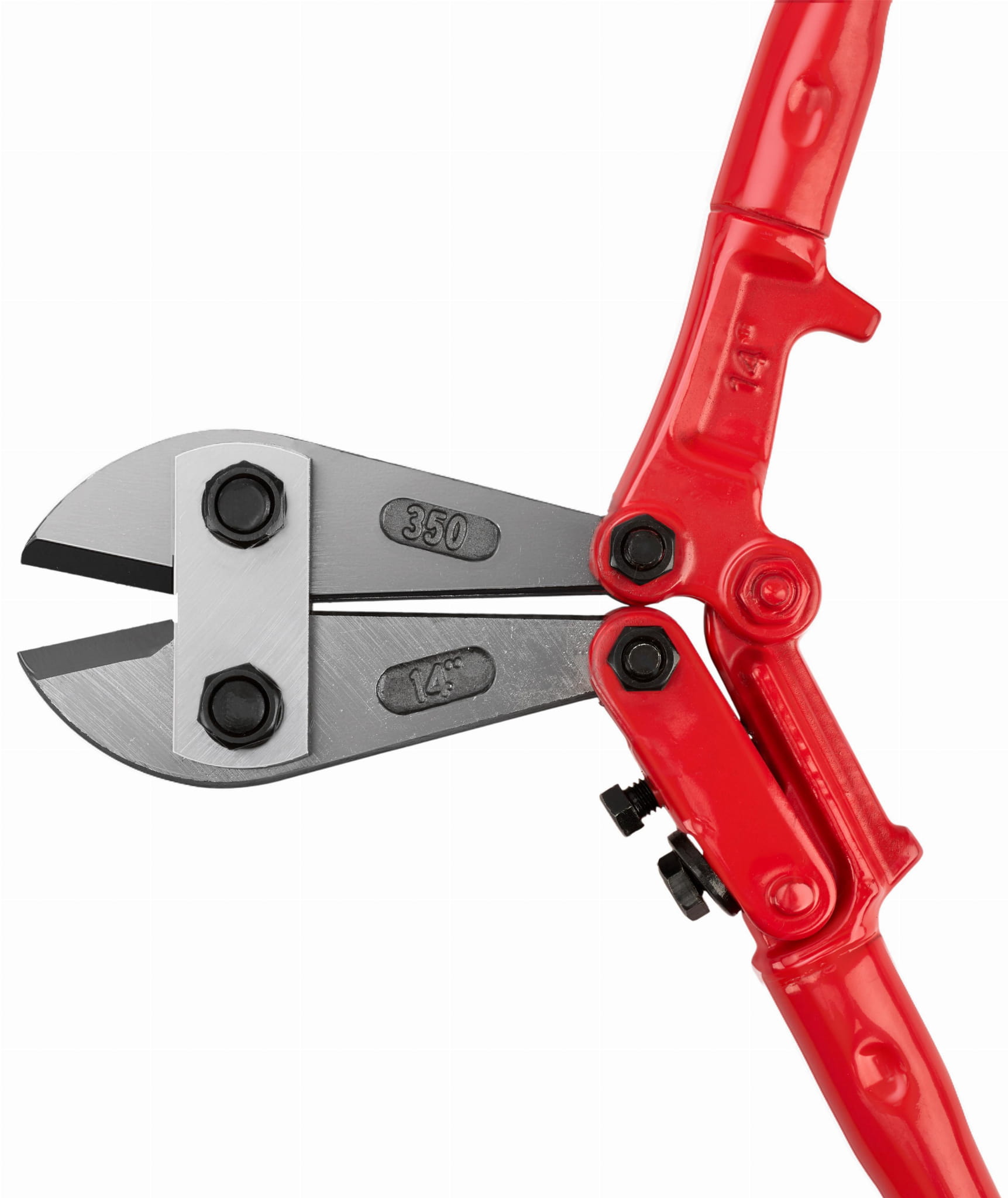 Większa długość nożyc oznacza dłuższe ramiona dźwigni — siła przyłożona do rękojeści przekłada się na większą siłę w miejscu cięcia. Nożyce 14-calowe są przeznaczone do materiałów o większej średnicy lub wyższej twardości niż modele 8–10-calowe.