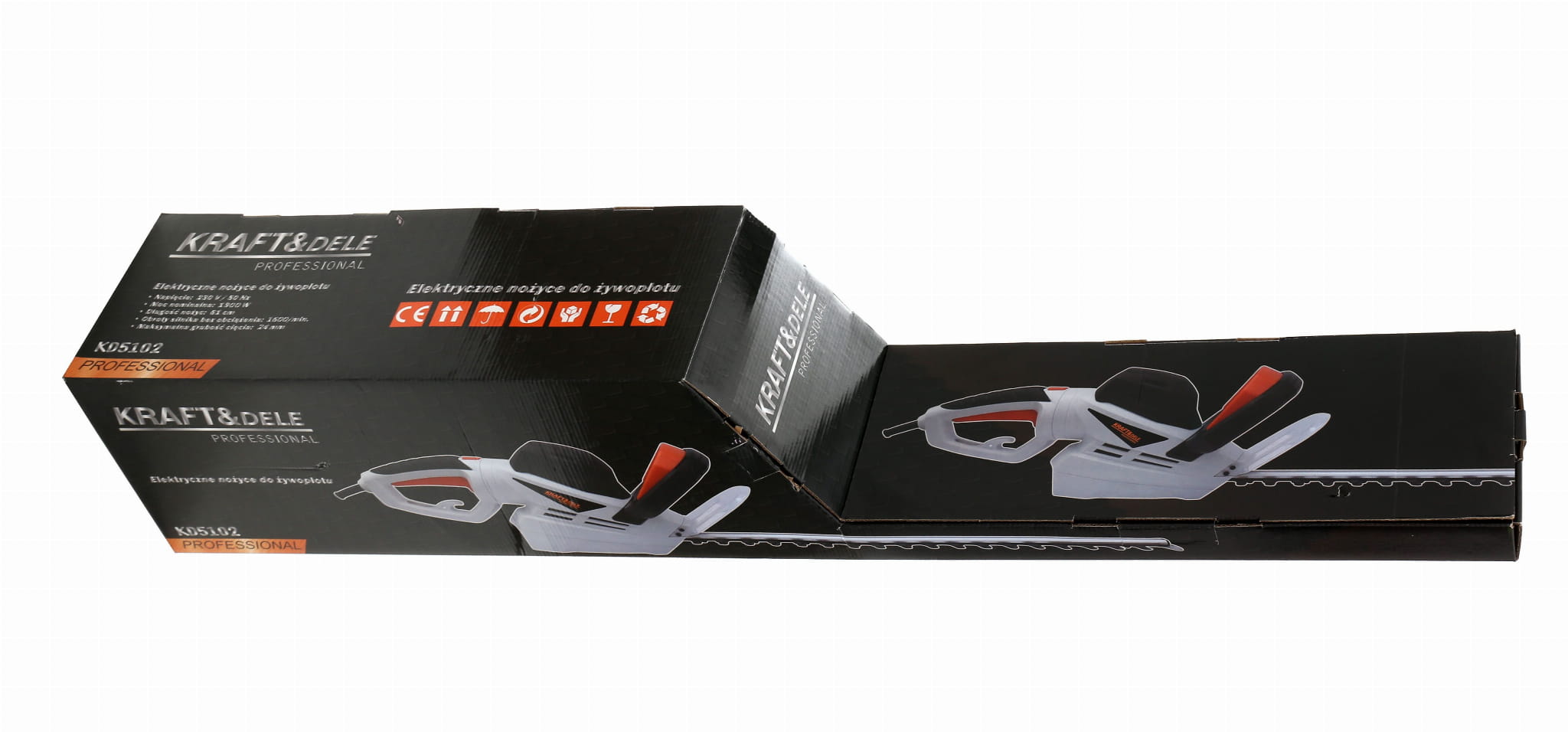 KD5102 to elektryczne nożyce do żywopłotu przeznaczone do przycinania małych i średnich żywopłotów oraz krzewów ozdobnych. Silnik o mocy 1900W współpracuje z listwą tnącą o długości 61cm, co pozwala na efektywną pracę przy ograniczonej liczbie przejazdów. Urządzenie wyposażono w system redukcji wibracji, a jego masa 4,25kg mieści się w dolnym przedziale dla tej klasy nożyc elektrycznych.