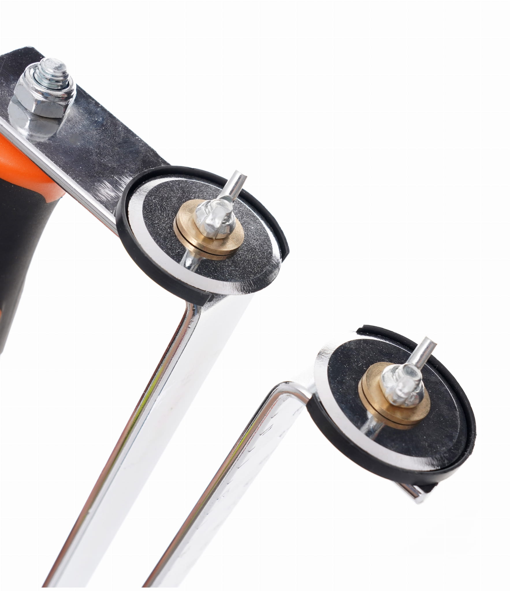 Ręczne narzędzie do cięcia płyt gipsowo-kartonowych (GK) metodą nacinania obustronnego. Dwa kółka tnące pracują jednocześnie po obu stronach płyty, co eliminuje konieczność dwukrotnego prowadzenia narzędzia i skraca czas wykonania cięcia prostoliniowego.