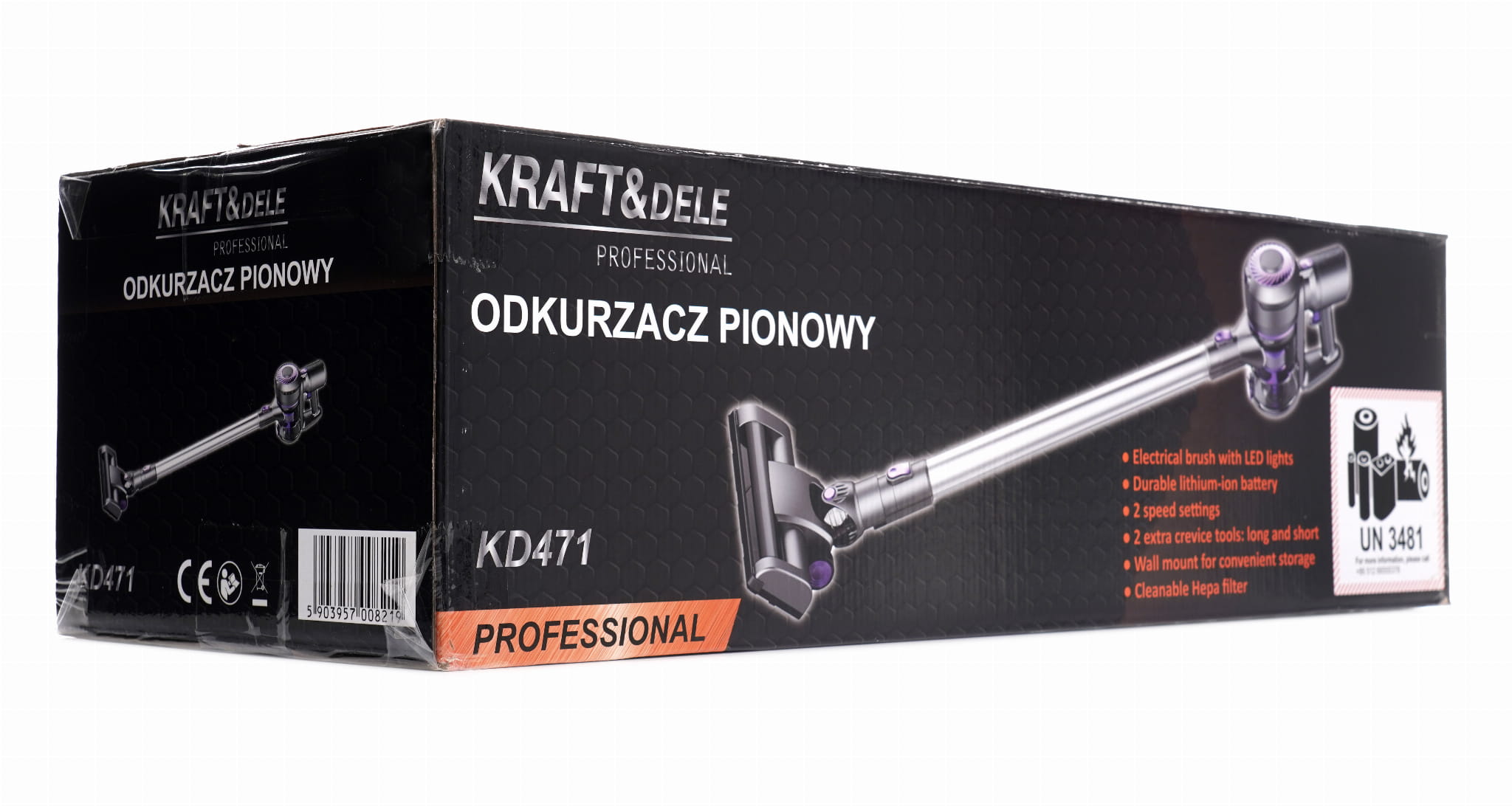 Odkurzacz bezprzewodowy pionowy KD471, ładowarka, bateria litowo-jonowa, szczotka elektryczna z diodą LED, ssawka szczelinowa, szczotka do tapicerki 2w1, instrukcja obsługi w języku polskim, oryginalne opakowanie. Gwarancja producenta: 12 miesięcy.
