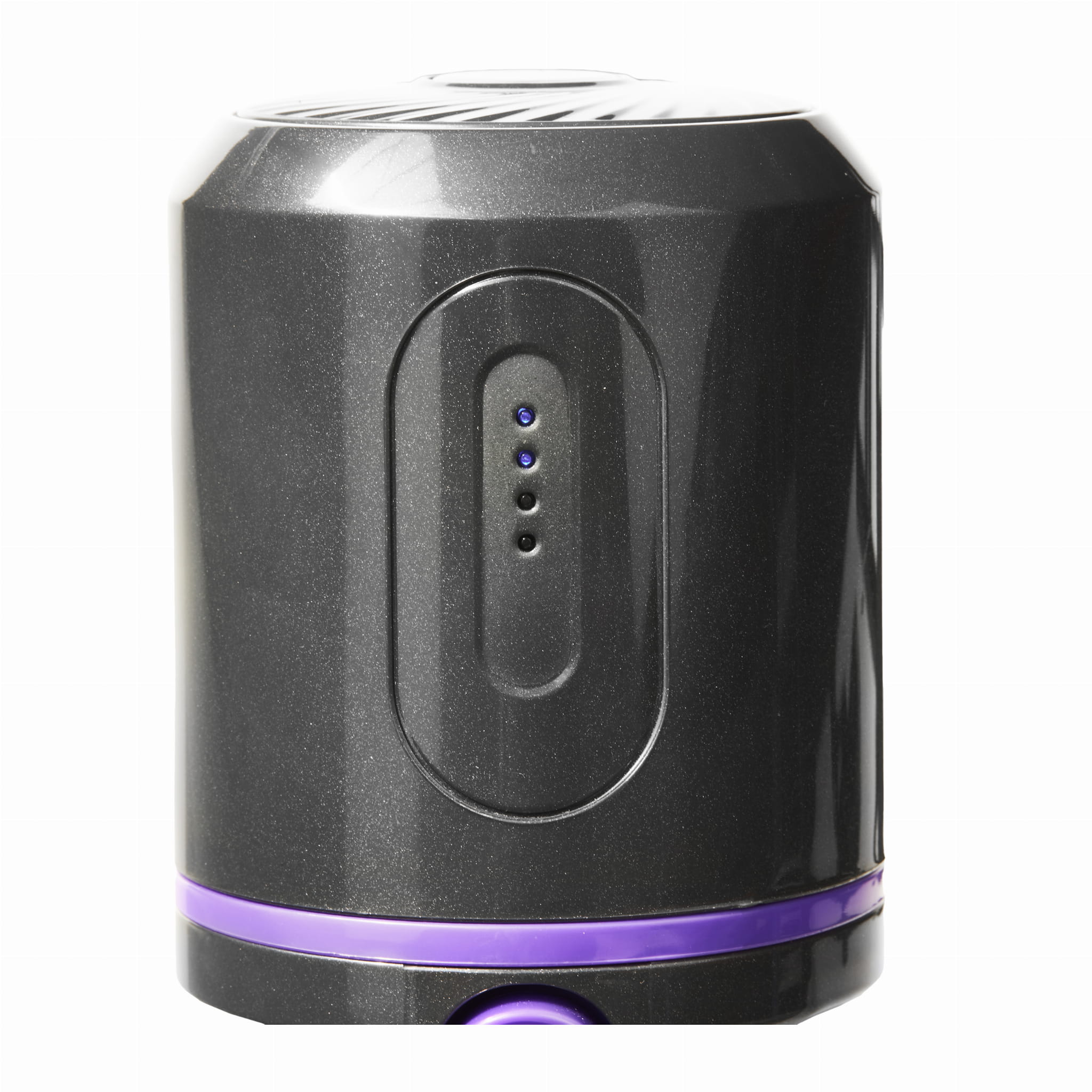 Odkurzacz można zamocować na ścianie za pomocą dedykowanego uchwytu, co pozwala przechowywać go wraz z akcesoriami w jednym miejscu i jednocześnie ładować baterię bez zajmowania podłogi.