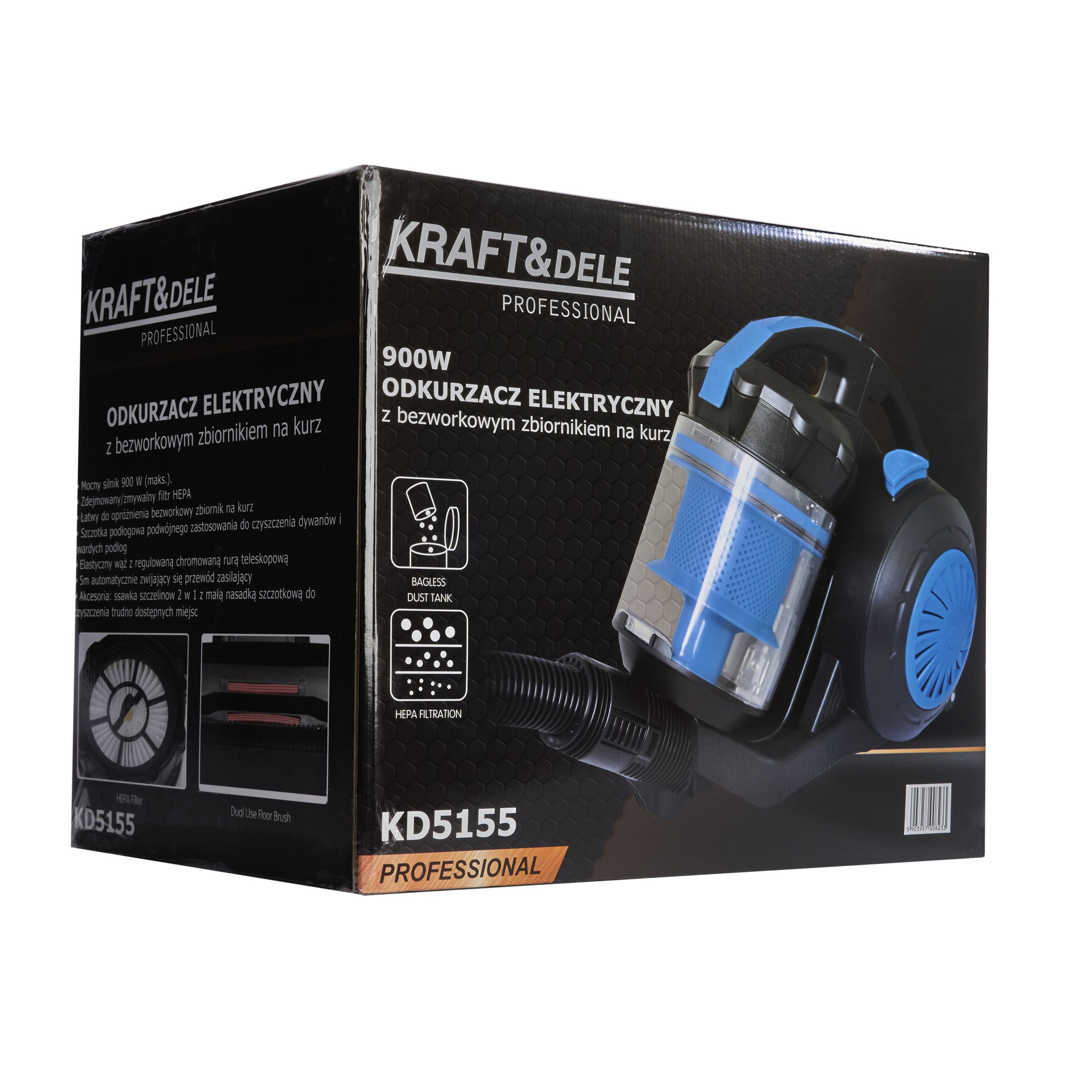 Odkurzacz elektryczny bezworkowy 900W KRAFT&DELE KD5155 to solidny wybór dla osób, które chcą sprzątać skutecznie i bez kosztów worków. Model KD5155 łączy technologię cyklonową, filtr HEPA i wygodne sterowanie przepływem powietrza, dzięki czemu łatwiej dopasować pracę urządzenia do różnych powierzchni.