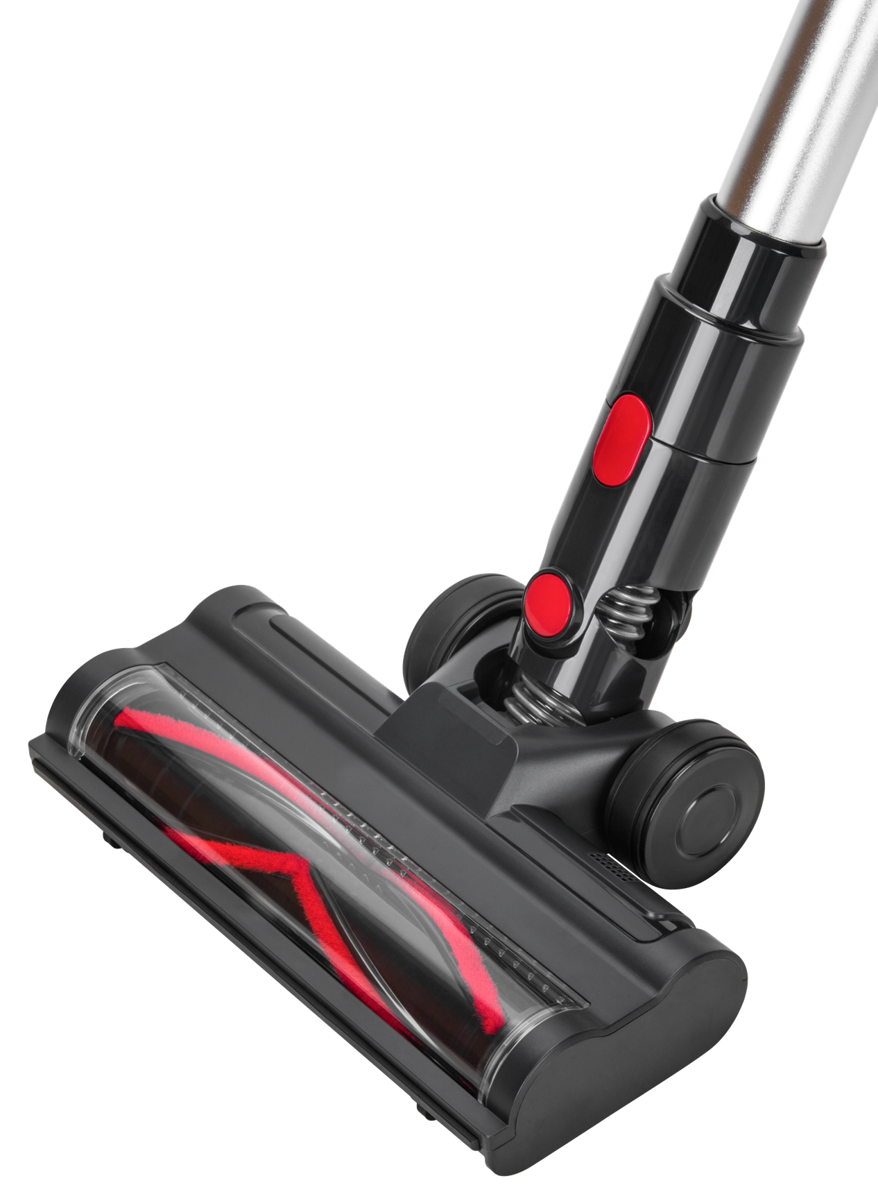 Obracająca się szczotka elektryczna skutecznie wyczesuje włosy i włókna z dywanów oraz wykładzin. Podświetlenie LED oświetla powierzchnię bezpośrednio przed głowicą, co ułatwia sprzątanie pod meblami i w słabo oświetlonych miejscach.