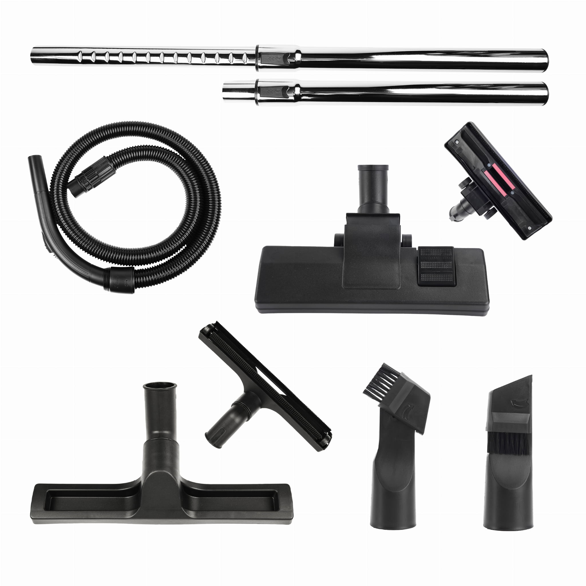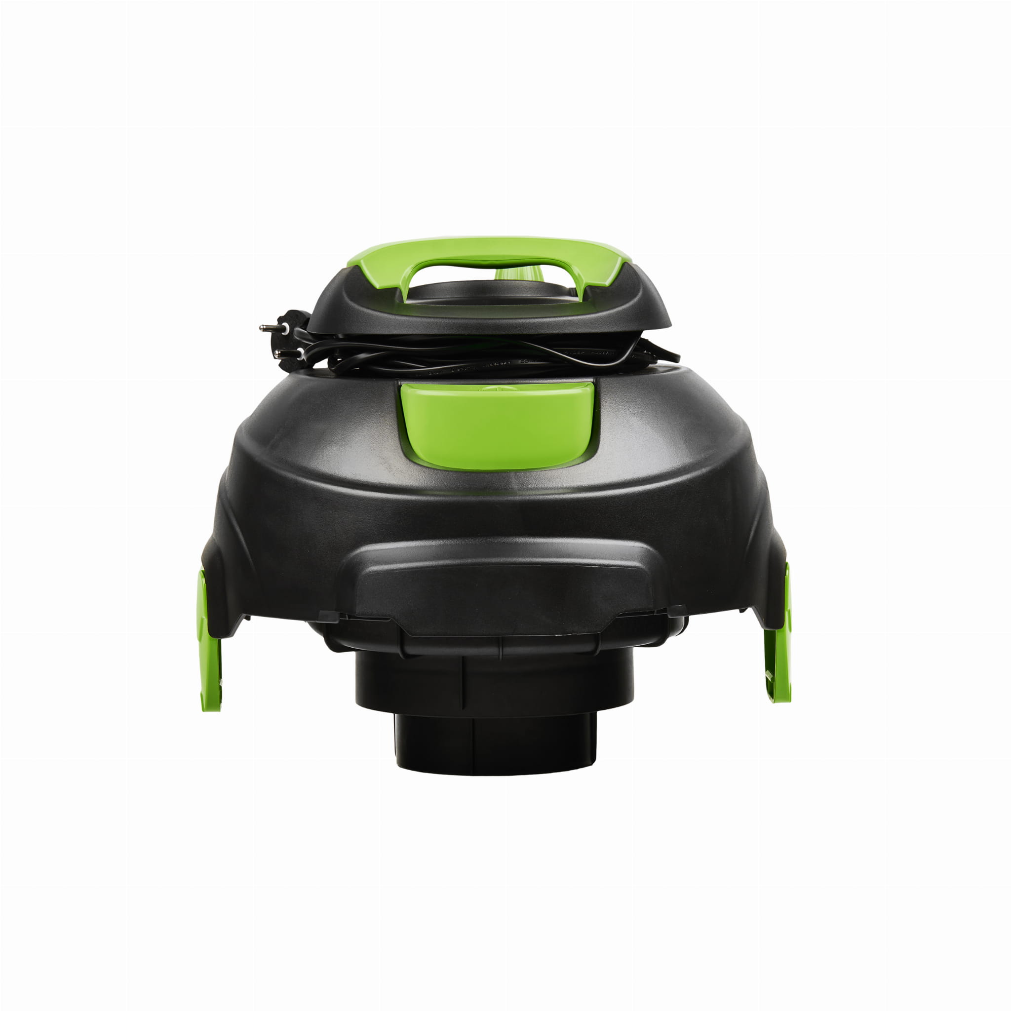 Pojemnik o pojemności 15 litrów umożliwia zbieranie zarówno suchych zanieczyszczeń (gruz, piasek, trociny, kurz), jak i płynów. Funkcja nadmuchu z tyłu urządzenia pozwala na wydmuchiwanie zanieczyszczeń z trudno dostępnych miejsc przed ich zebraniem, co jest przydatne m.in. przy czyszczeniu szczelin czy filtrów.