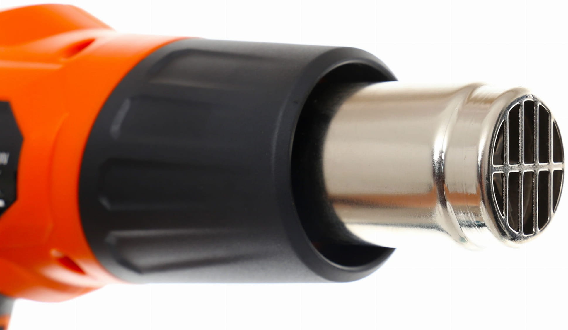 Bieg pierwszy (350°C, 300 l/min) sprawdza się przy pracach precyzyjnych wymagających niższej temperatury — np. aplikacji folii termokurczliwej czy usuwaniu etykiet. Bieg drugi (550°C, 500 l/min) zapewnia intensywne nagrzewanie przy usuwaniu farb, zgrzewaniu rur czy formowaniu tworzyw syntetycznych.