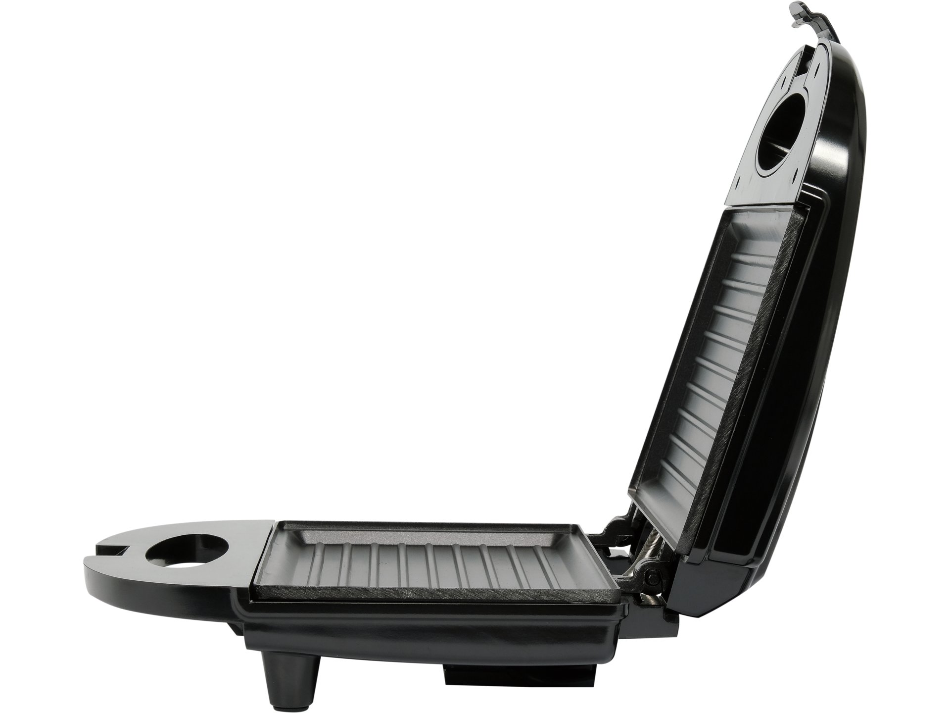 Kompaktowy opiekacz elektryczny z ryflowaną płytą grillową i nieprzywierającą powłoką. Urządzenie o mocy 750W przeznaczone do przygotowywania tostów, panini i grillowanych przekąsek w warunkach domowych i biurowych.